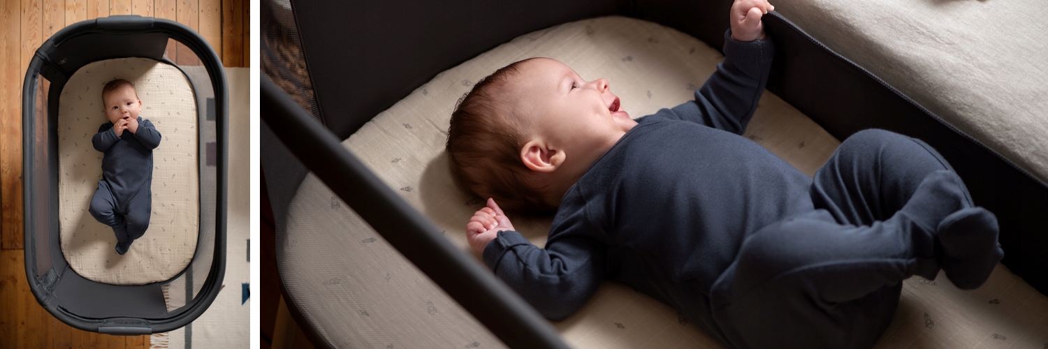 Кровать подходит для детей от рождения до 9 кг. Чтобы родительская кровать наилучшим образом соответствовала размеру кровати, она оснащена 5-ступенчатой регулировкой высоты, ее боковые части выполнены из сетки, а матрас приятен на ощупь, главным образом, благодаря переработанным тканям Eco Care.