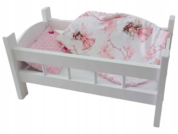 ЛІЖКА ДЕРЕВ'ЯНЕ БІЛЕ для ляльки + ПОСТІЛЬНА БІЛИЗНА