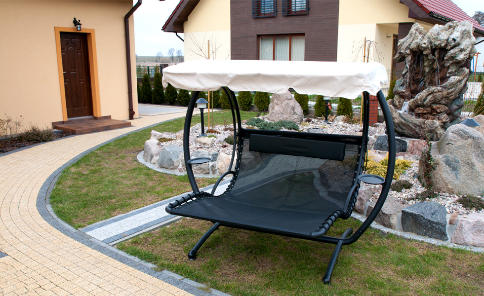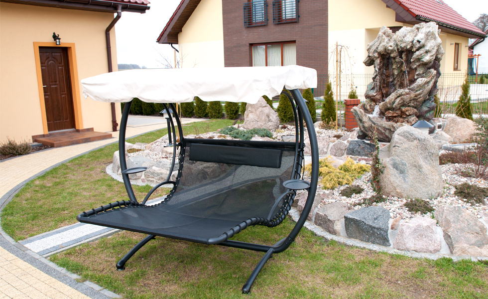 Современный, стильный дизайн ставит нашу продукцию на первое место среди гамаков-шезлонгов по удобству и полезности садовых товаров. Конструкция двухместного шезлонга изготовлена из прочных толстых стальных труб, что обеспечивает очень высокую устойчивость. Все покрыто порошковой краской, что гарантирует устойчивость к погодным условиям на долгие годы. Чехол на диван изготовлен из полиэтилена, который очень прочный и приятный на ощупь. Для повышения комфорта отдыха наше изделие оснащено навесом, защищающим пользователя от солнечных лучей, а также от неожиданного дождя