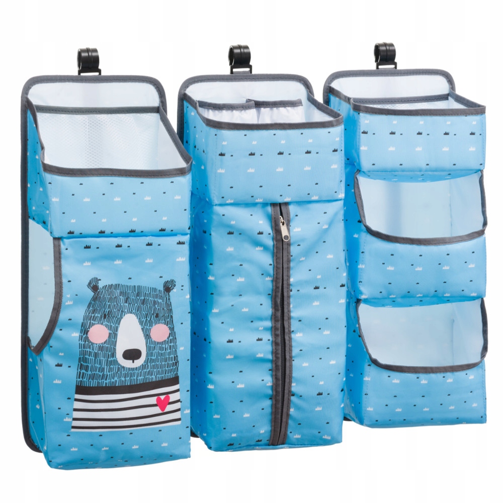 Органайзер для кровати позволит в организованном порядке хранить детскую одежду, игрушки, косметику и подгузники. Органайзер состоит из трех частей, поэтому при необходимости его можно разделить и разместить в соответствующих местах, например, в шкафу, спинке стула или каркасе кровати.