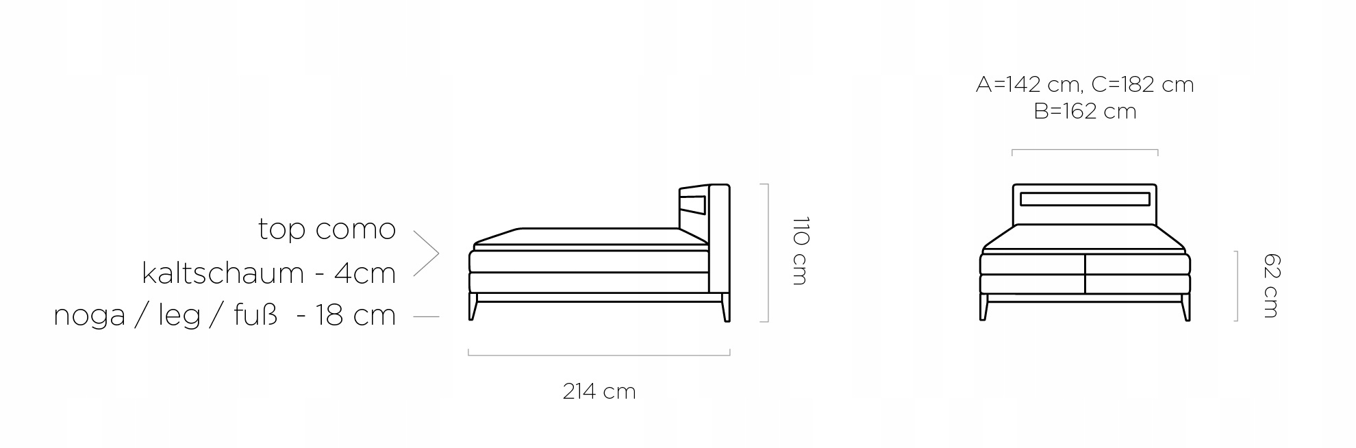 - Спальное место: 180 х 200 см.