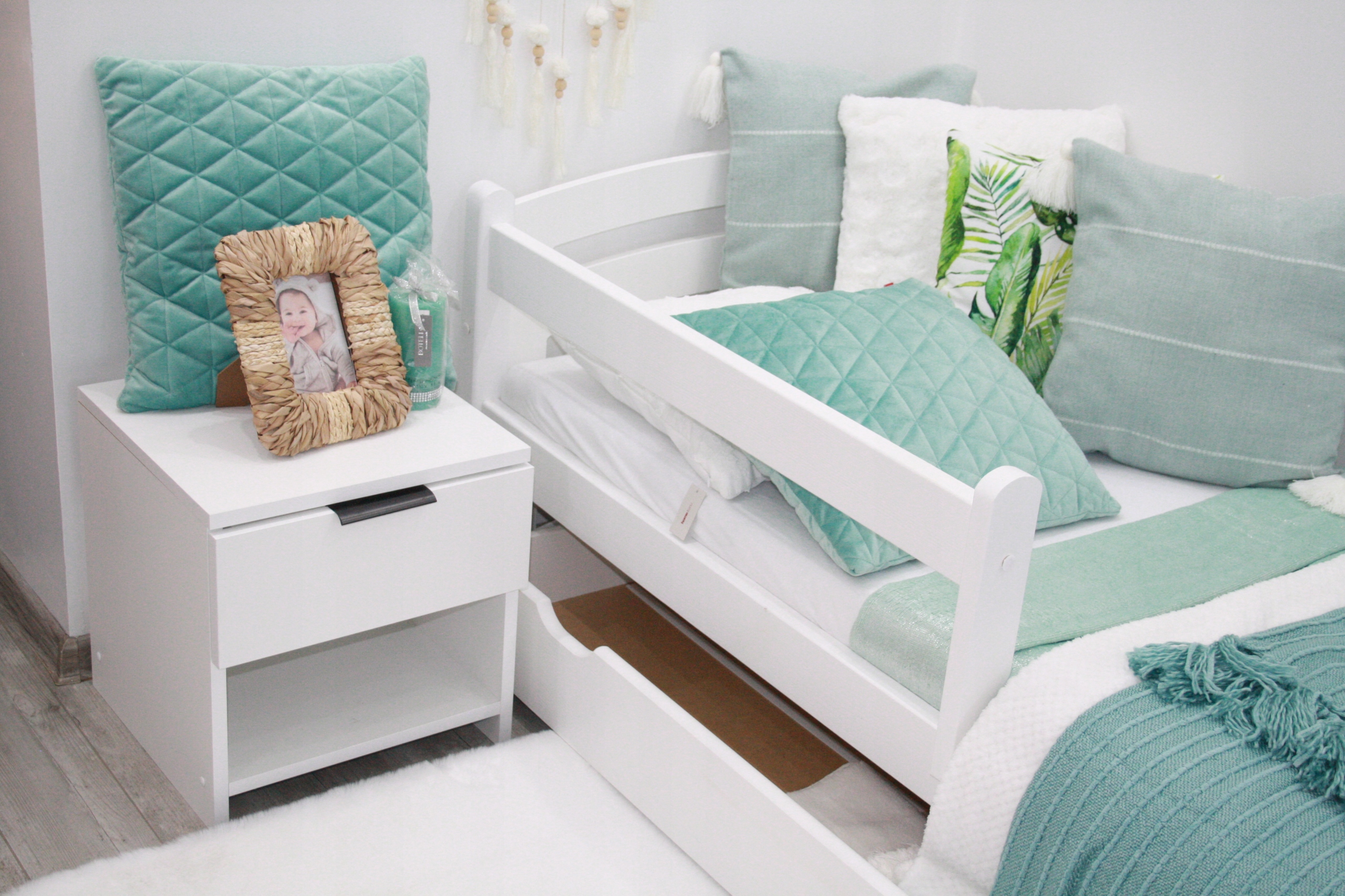 Деревянная кровать белая детская детская с помощью барьеры мела 80x160 + рама