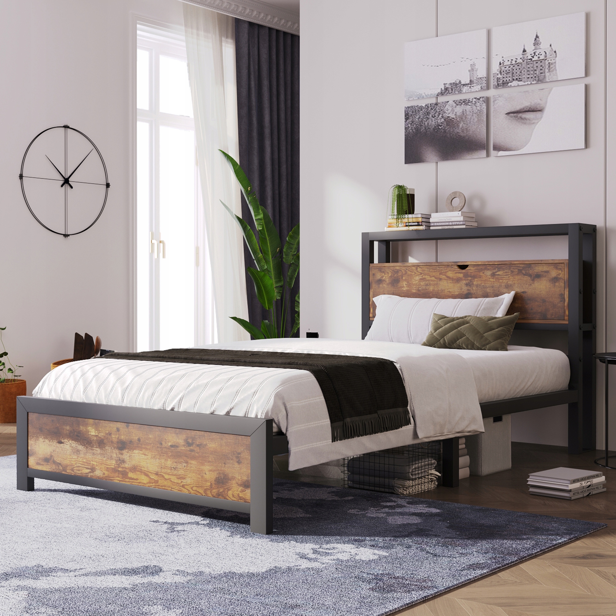Уникальный дизайн: Сочетание рустикального изголовья и изножья с металлическими полосками в стиле ретро создает сильный индустриальный/деревенский оттенок, который придает вашей комнате индустриальный вид и уникальный характер. Изголовье состоит из водонепроницаемой и устойчивой к царапинам деревянной доски.