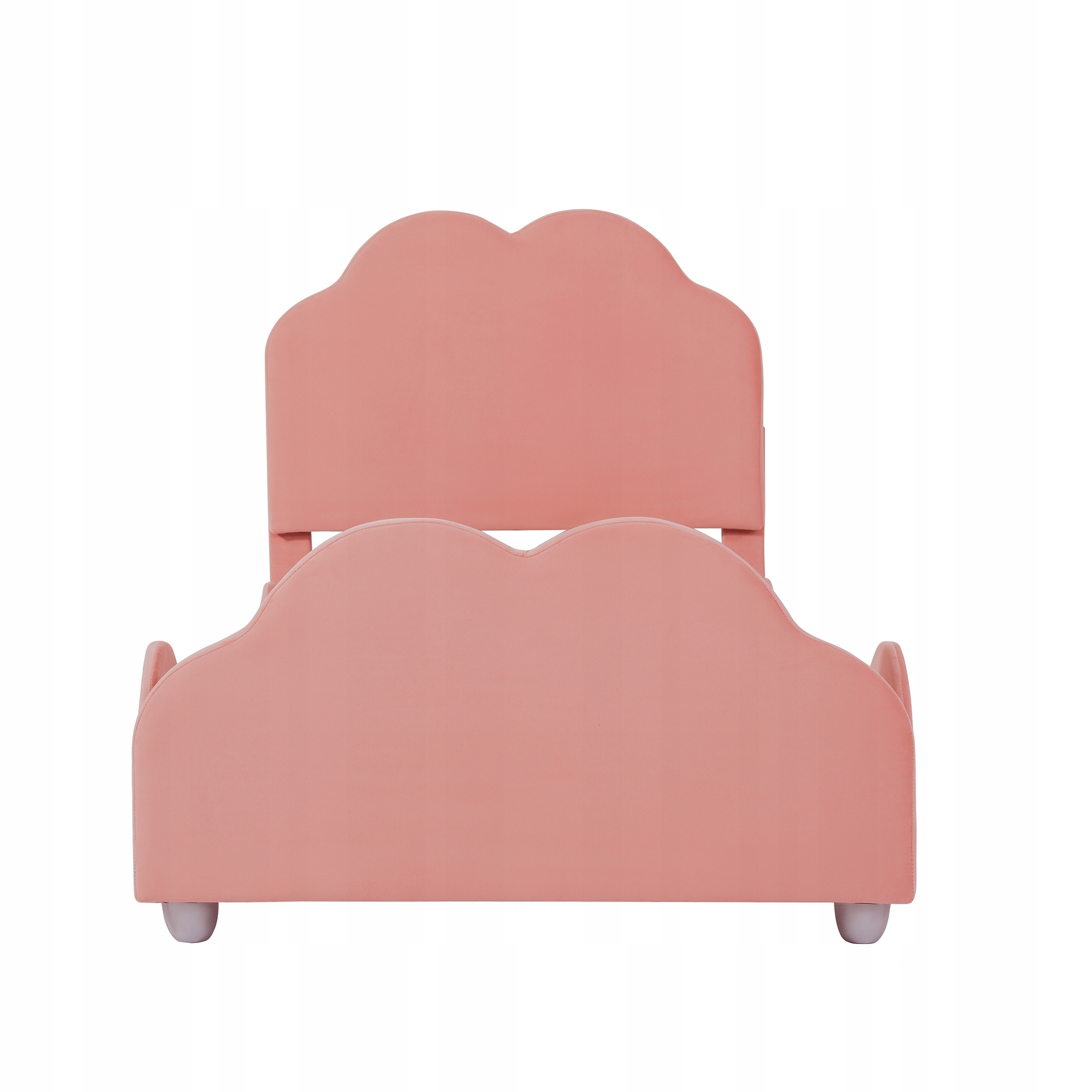Детская кровать с мягкой обивкой Каркас детской кровати с балюстрадой, высотой 90 х 200 см, с облачным изголовьем и подставкой для ног. Односпальная кровать из приятного для кожи розового бархата