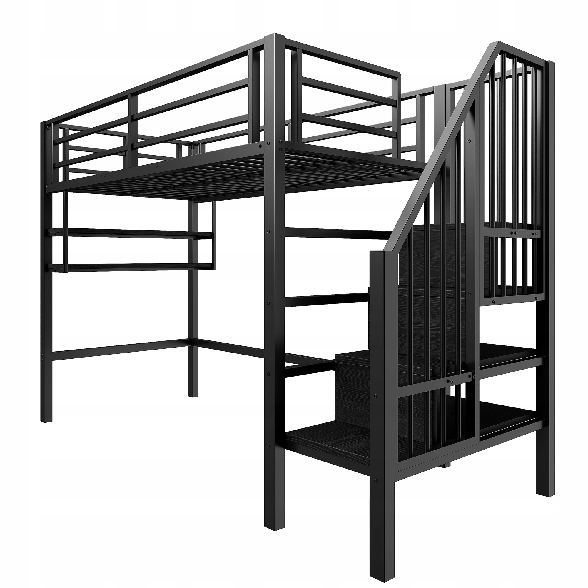 Кровать двухъярусная Детская кровать железная 90*200 см, полки, лестница черная