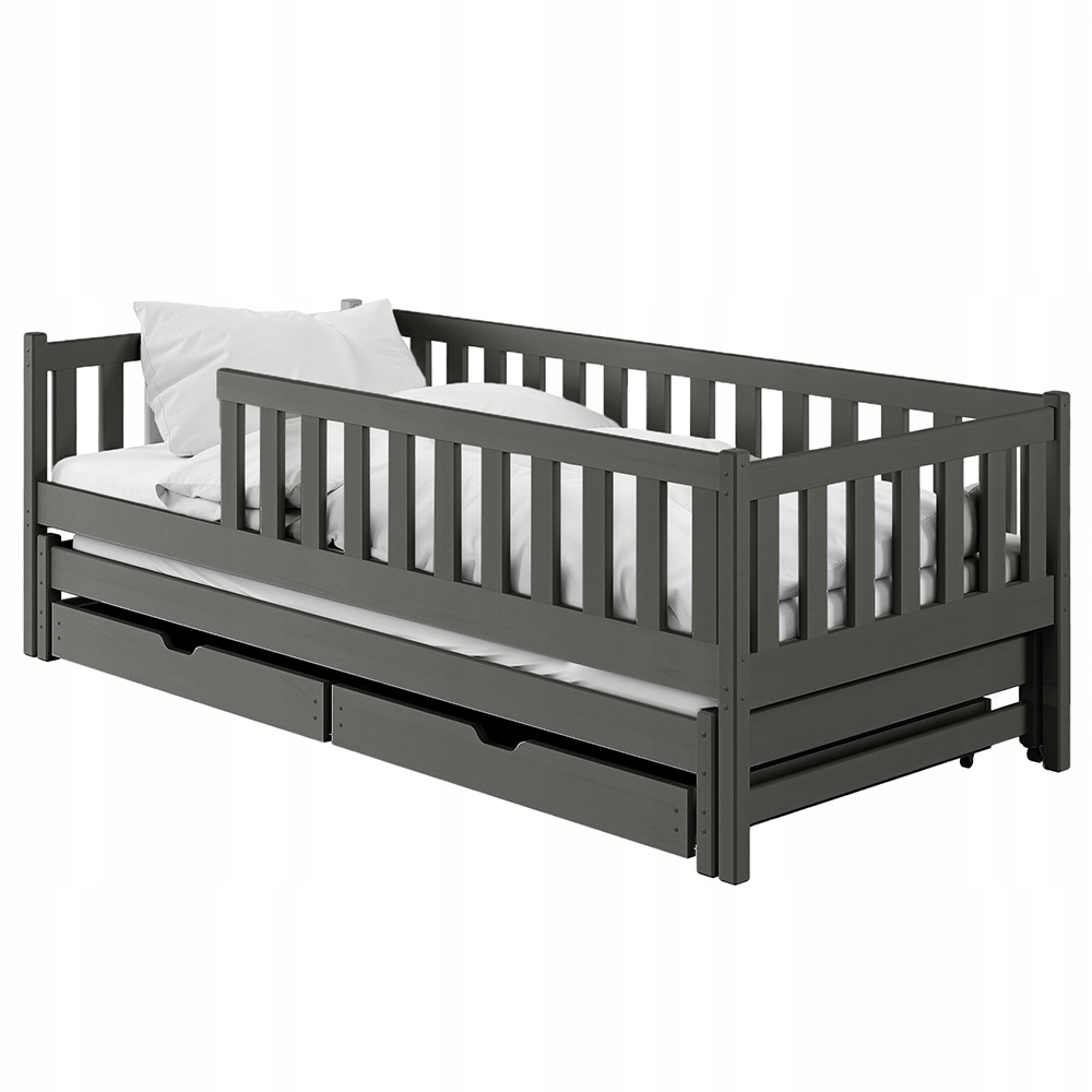 Кровать односпальная с перилами и выдвижной кроватью COLA 80х180 графит