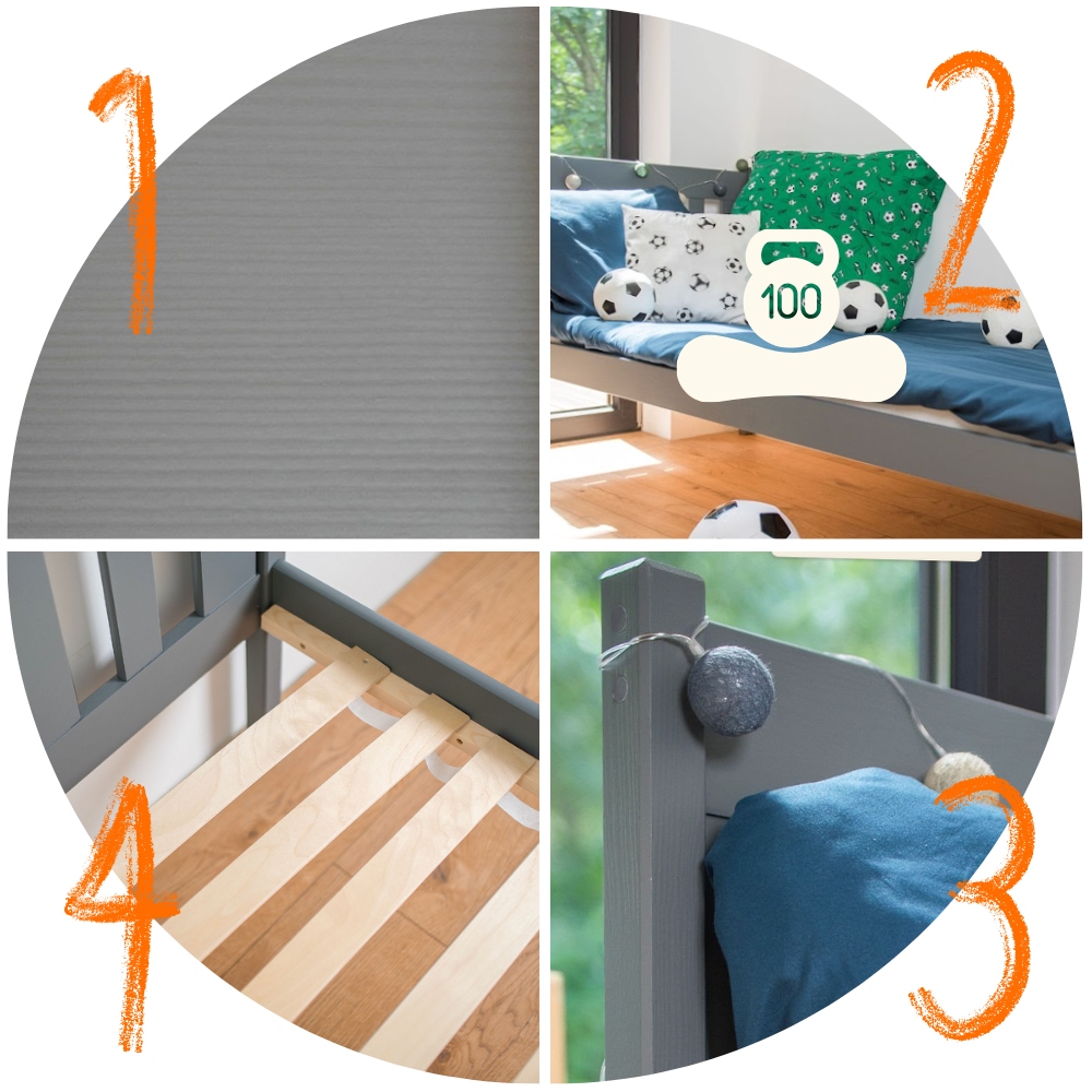 Важно, что эти ящики были разработаны с учетом самых маленьких. Их механизм, основанный на плавно работающих направляющих, позволяет даже ребенку нескольких лет легко открывать и закрывать их. Достаточно одного простого движения, чтобы спрятать игрушки или дотянуться до любимого одеяла. Таким образом, кровать COLA элегантного графитового цвета становится не только центральным элементом композиции, но и первым практическим инструментом для обучения самостоятельности и поддержания порядка.