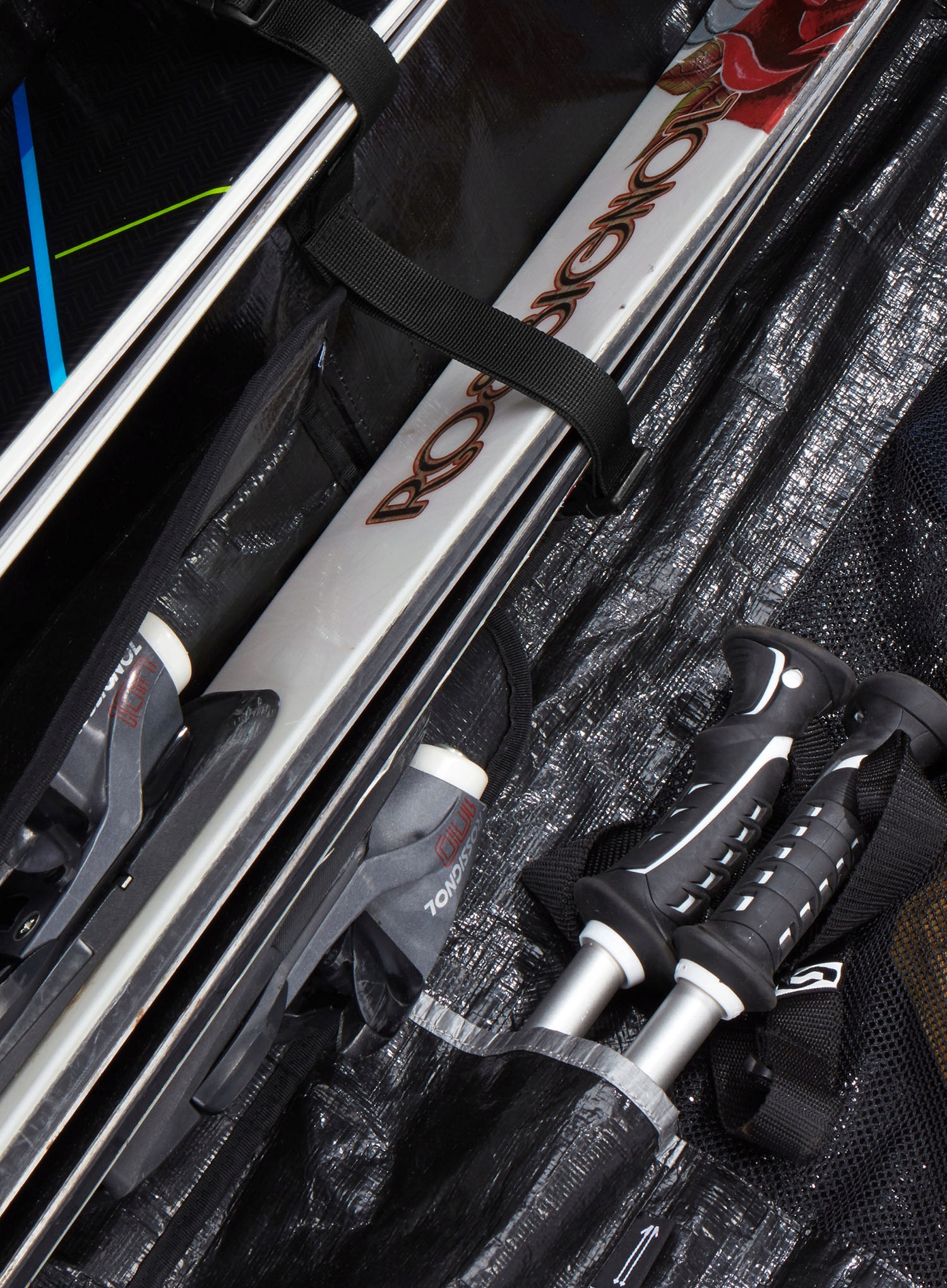 Сумка для лыж Thule RoundTrip Ski Roller длиной 175 см оснащена двумя мягкими чехлами, которые позволяют удобно перевозить одежду и аксессуары. Чтобы они не двигались, их кладут на носки лыж. Груз фиксируется шнуром со стопором. Кроме того, производитель включил съемную мягкую перегородку для разделения лыж и придания жесткости конструкции. Сумка застегивается на качественную S-образную молнию от известного производителя YKK®, что облегчает установку и вынимание снаряжения. Конструкция молний позволяет застегивать их дополнительным навесным замком (продается отдельно).