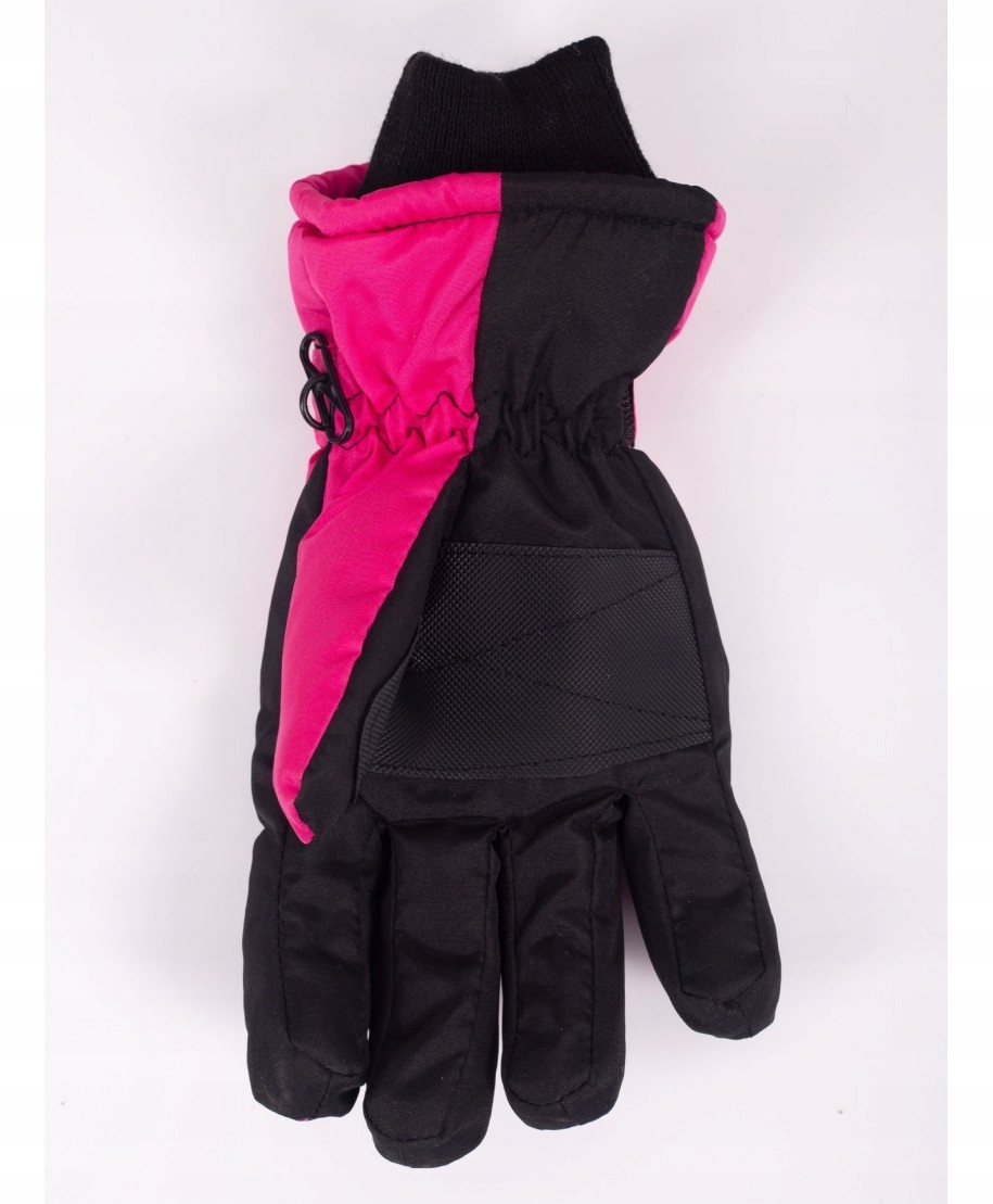 Лыжные перчатки Yoclub для девочек пятипалые, розовые с сердечками