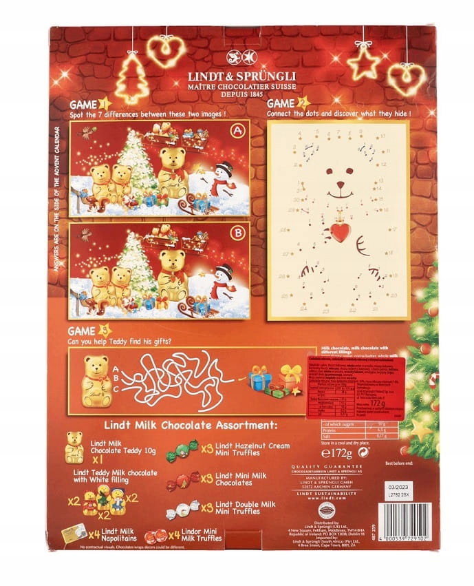 LINDT ADVENT КАЛЕНДАРЬ МИШКА ТЕДДИ 170г