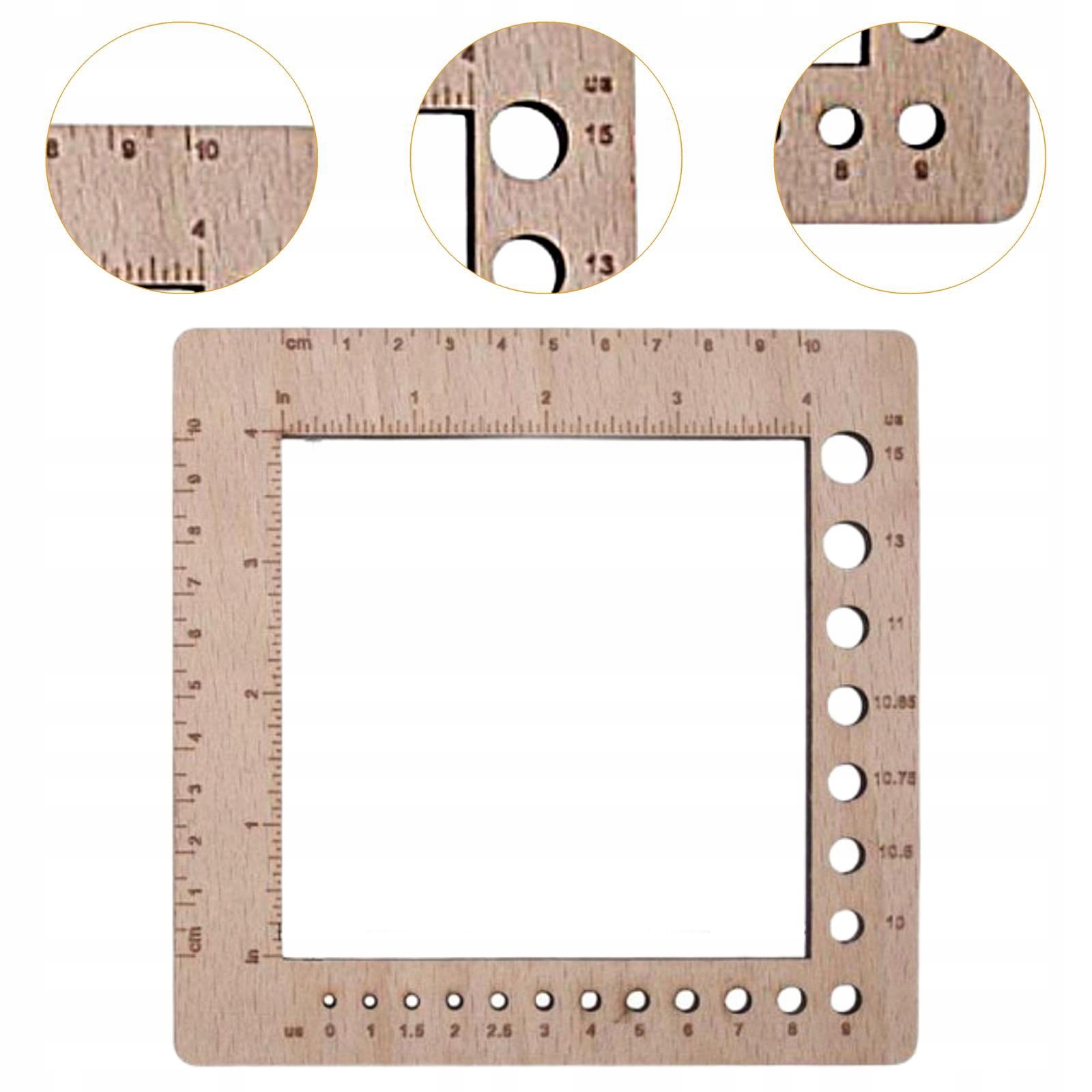 [Материал] Вязальная линейка изготовлена из древесного материала, который прочный и долговечный, может использоваться в течение длительного времени. Каждая линейка для вязания крючком имеет 18 измерительных отверстий разного размера, что обеспечивает большое удобство при вязании.