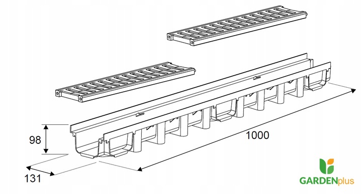 с серой решеткой из ПВХ. С классом силы решетки b125 (до 12,5 тонн). Пешеход, велосипед и автомобиль с обычным движением , например, домашний гараж. Также предназначен для зеленых зон, например, парки, квадраты, домашние зоны