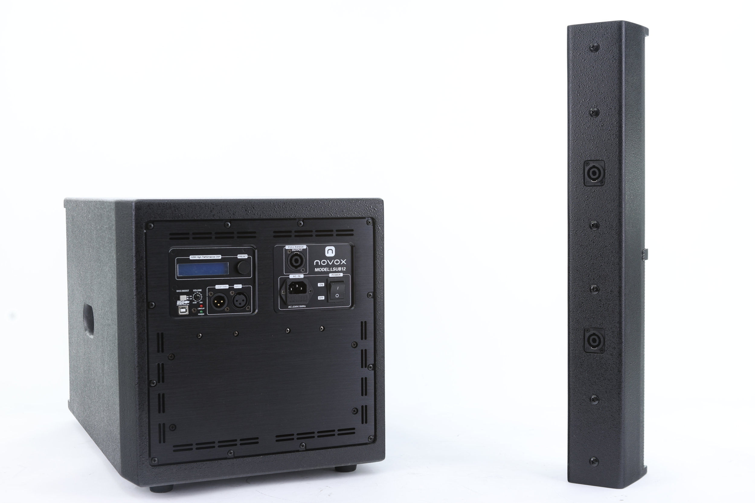 Novox Y9+Sub12A — активный линейный комплект, состоящий из твитера и вуфера. Пассивная колонка Y9 имеет 9 динамиков диаметром 3 дюйма, питается от активного баса диаметром 12 дюймов. Sub12A также имеет процессор DSP с готовыми программами и позволяет устанавливать собственные пресеты. В комплект входит подставка-колонна и кабель. Современный внешний вид, высокая мощность, высокое качество звука подойдут для любой вечеринки. Набор, рекомендуемый для каждой команды и любого мероприятия.