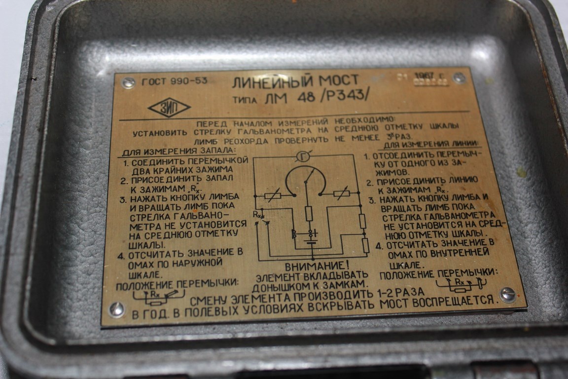 Линейный мост LM48 использовался для измерения стойкости электродетонаторов в полевых условиях при температуре от -40 до +50 градусов Цельсия. Применялся для измерения сопротивления от 0,2 до 5000 Ом, размеры 112 х 150 х 72 мм, вес 1,2 кг.
