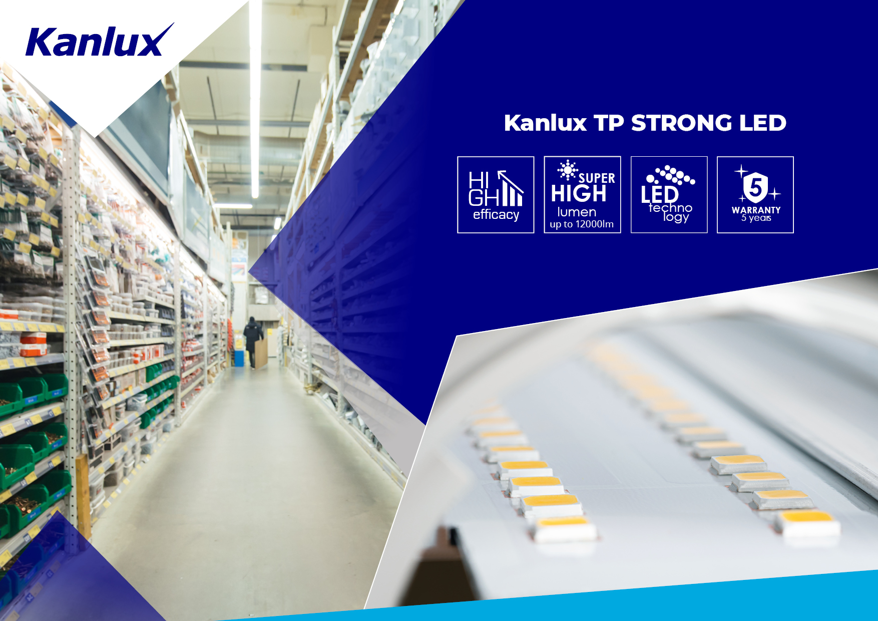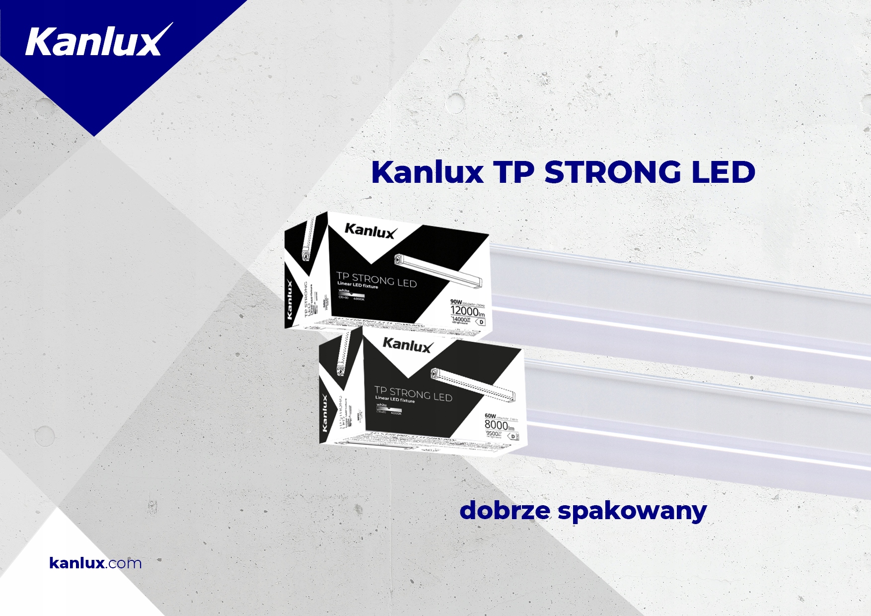 Kanlux TP STRONG — герметичный светильник для специальных задач. Герметичность на уровне IP65, устойчивость к механическим повреждениям: IK08 и светоотдача: 135лм/Вт – вот основные преимущества данного светильника. Кроме того, угол светораспределения: Код продукта: 33163 logo KANLUXX125⁰/Y110⁰.