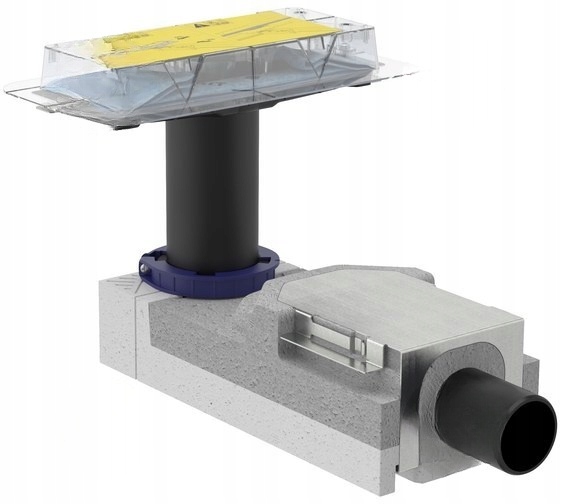Контроль качества согласно EN 1253-3Предварительно установленная уплотнительная тканьУплотнительная ткань шириной 10 см, установленная по всей окружности слива, для соединения с гидроизоляционным базовым элементом из пенополистирола для звукоизоляции и установки сифона