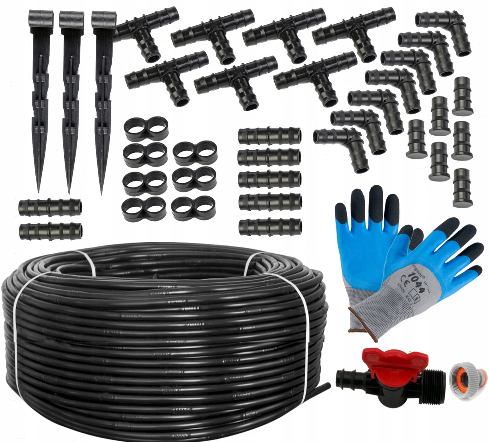 Капельная линия 16 мм, 33 см, рулон 100 м + 100 штифтов и 37 аксессуаров
