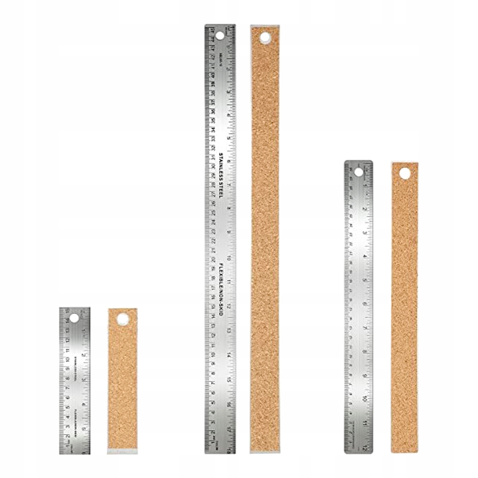 3 шт. пробковая металлическая линейка, нескользящая, с прямым краем, измерительное устройство, инструмент, линейки из нержавеющей стали с пробковой подложкой для студентов.