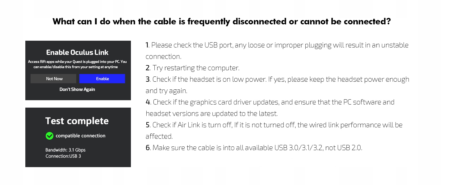 Исключительная скорость передачи данных: Поддерживает скорость передачи данных USB 3.0. Протестировано на скорости передачи данных выше 2000 Мбит/с, с низкой задержкой и минимальной потерей сигнала, стабильной и быстрой синхронизацией данных, обеспечивающей плавный игровой процесс в виртуальной реальности. Входящая в комплект волшебная лента поможет закрепить кабель и Quest 3 для более стабильного соединения.