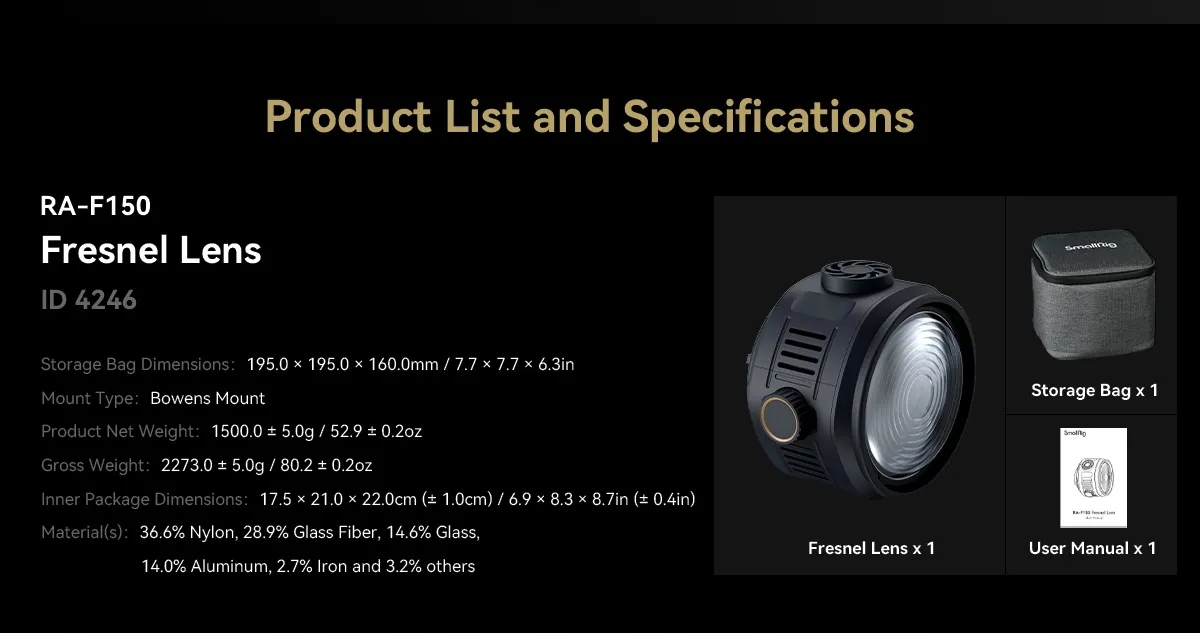 С линзой SmallRig RA выходной свет становится в 13,2 раза ярче - Линза Френеля F150 [4246]. Все это возможно благодаря использованию высокопрозрачного, термостойкого боросиликатного стекла. Здесь также был использован процесс высокотемпературного ламинирования, что позволило добиться еще большей долговечности линзы. Более того, в результате также удалось добиться большей прозрачности и пропускания оптического элемента.