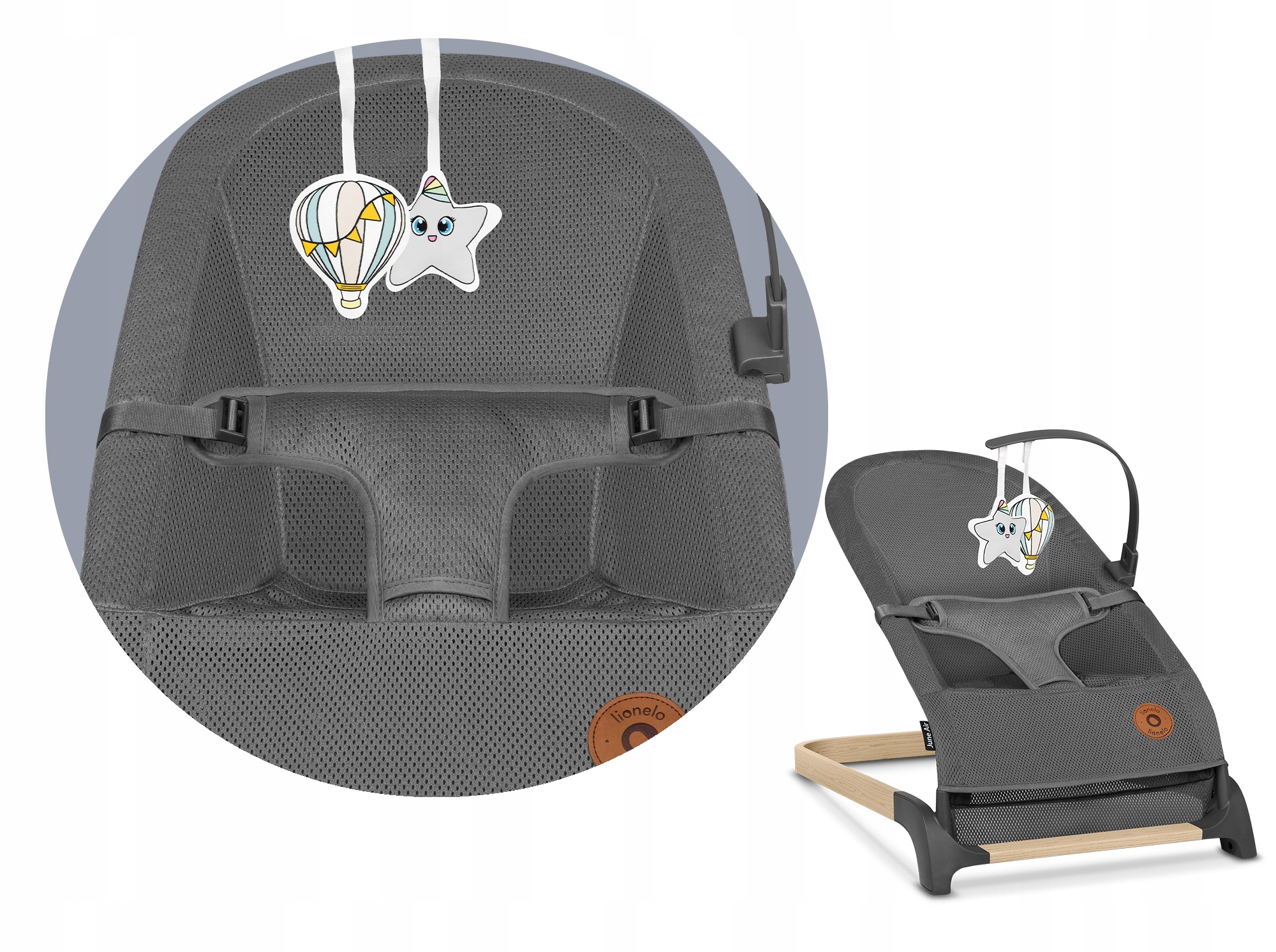 Lionelo June Air - шезлонг-качалка с игрушками Серый Графит