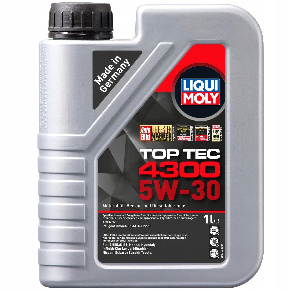 Просматривая «LIQUI MOLY OIL LIQUI MOLY TOP TEC 4300 5W30 1л API SM/CF ACEA», вы можете быть уверены, что данный товар из каталога «Синтетические» будет доставлен из Польши и проверен на целостность. В цене товара, указанной на сайте, учтена доставка из Польши. Внимание!!! Товары для Евросоюза, согласно законодательству стран Евросоюза, могут отличаться упаковкой или наполнением.