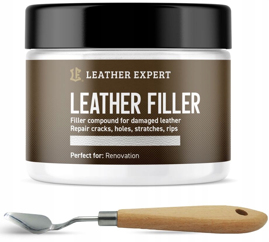 Leather Filler используется для ремонта различных видов кожи в автомобилях, кожаной мебели, аксессуарах и сумках. Перед нанесением Leather Filler на кожу ее следует тщательно очистить с помощью Leather Expert Cleaner или Leather Expert Mousse. Затем обезжирьте поверхность кожи с помощью спиртового очистителя для кожи. Нанесите на сухую кожу средство Leather Filler с помощью шпателя. В случае глубоких полостей стараемся заполнить их постепенно, тонкими слоями. Каждый слой должен быть хорошо высушен. После ремонта и тщательной просушки кожи можно приступать к окраске красителем для кожи. Наконец, закрепите покрытие лаком для кожи Top Coat.
