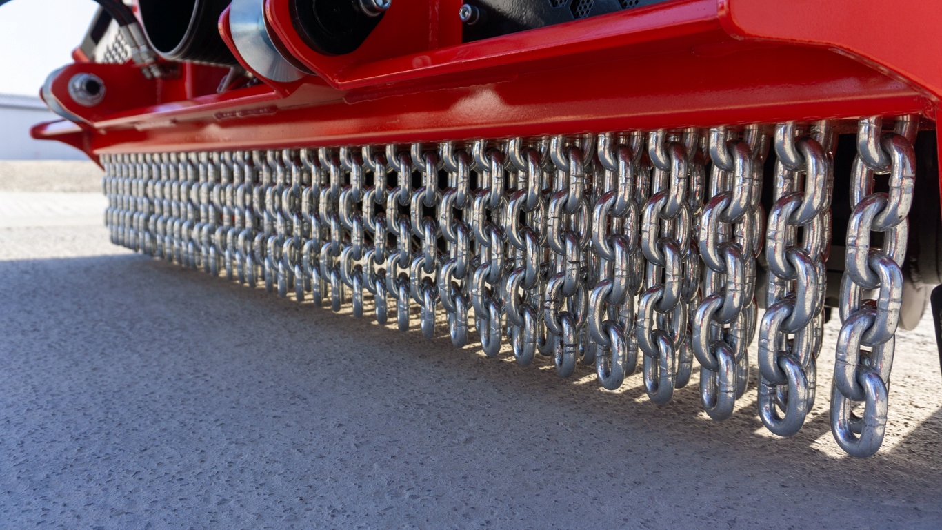 Звенья цепи тяжелые, двухрядные, расположены по всей рабочей длине, возможна установка четырехрядного решета.