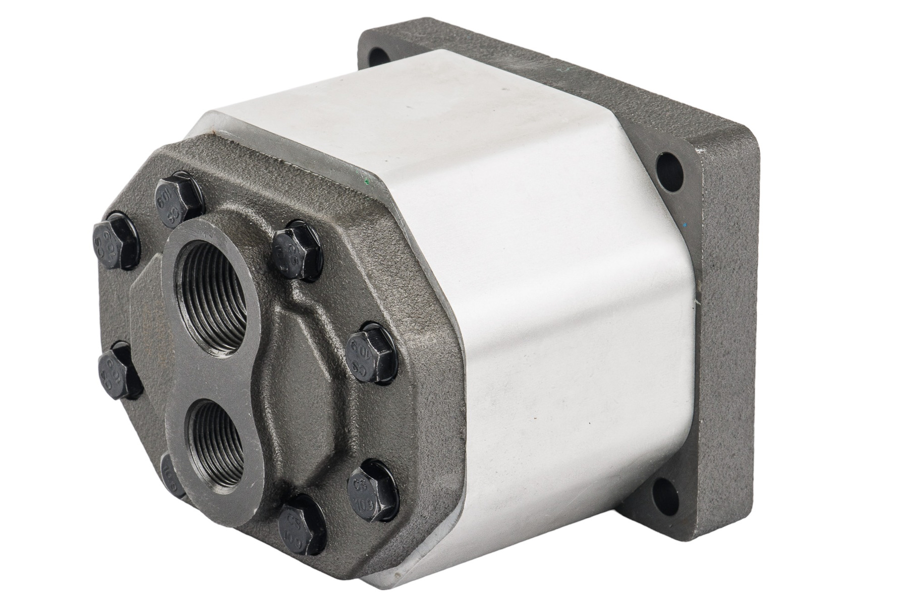 Насос с внешней шестерней состоит из двух одинаковых шестерен, максимально плотно смонтированных в корпусе. Вращающиеся шестерни выносят жидкость из всасывающей камеры в пространство между зубами, транспортируя ее в нагнетательную камеру. Одно из колес приводится в движение внешним источником. Производительность насоса варьируется от 19 до 61,1 [см3/об], максимальная скорость от 2500 до 3500 [об/мин], давление до 250 [бар].
