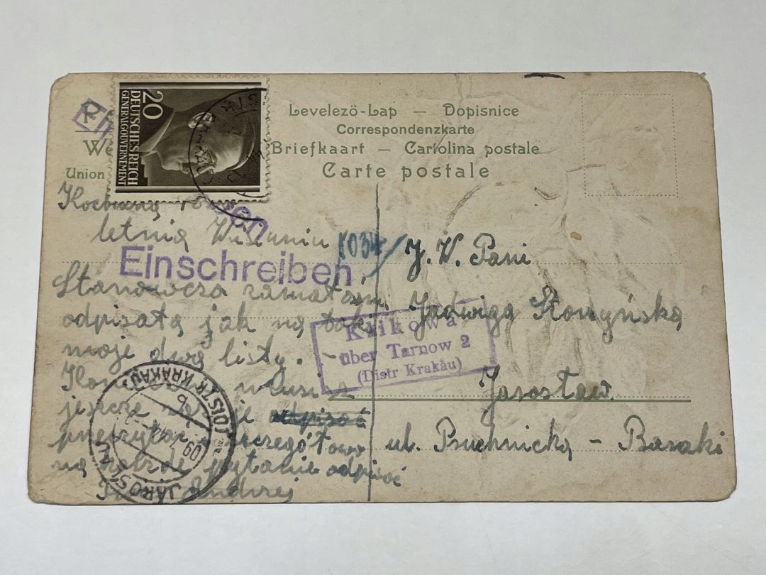 Лист-картка 1944 р JAROSŁAW - Краківський район - KRAKAU - Klikowa Tarnów