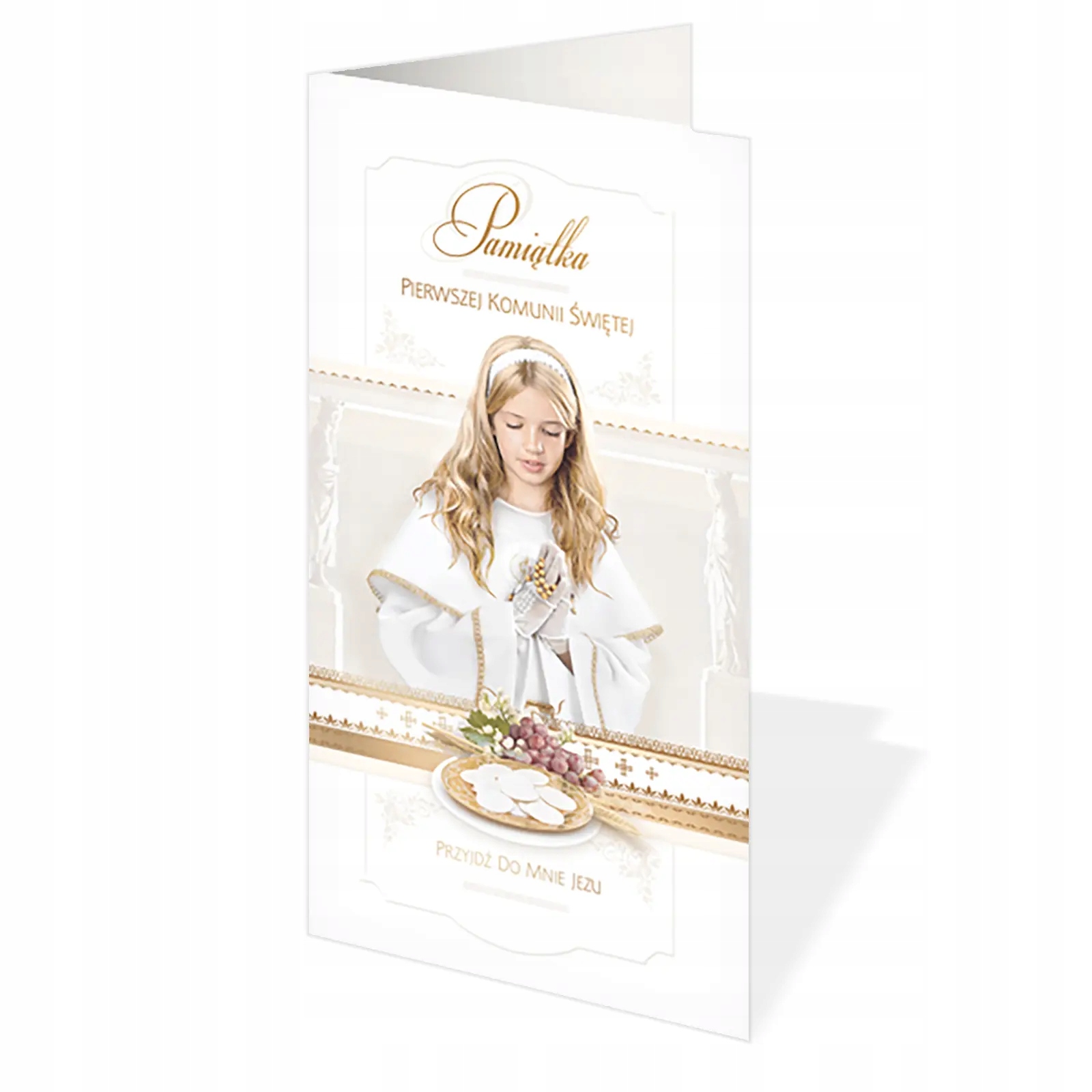- карта для первого причастия. Наша карта для причастия с гордостью представляет иллюстрацию девушки, присоединяющейся к первым святым причастиям и евхаристическим элементам, таким как хозяин и виноград, дополнительно украшена позолотой.