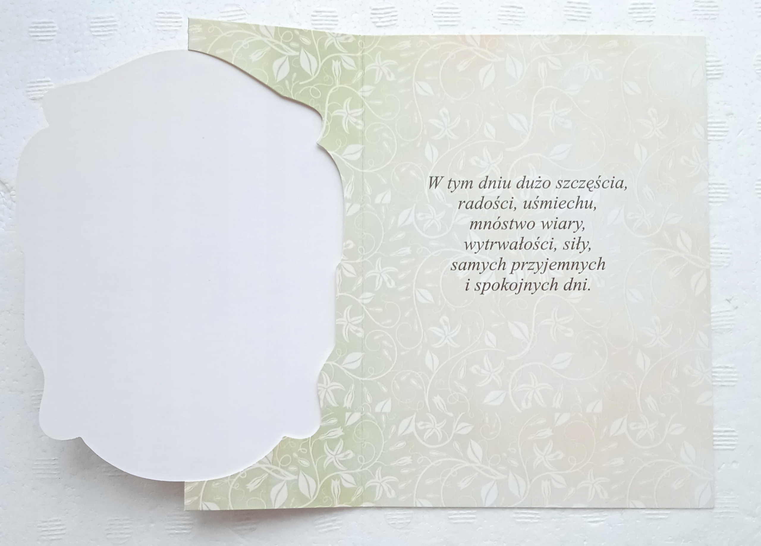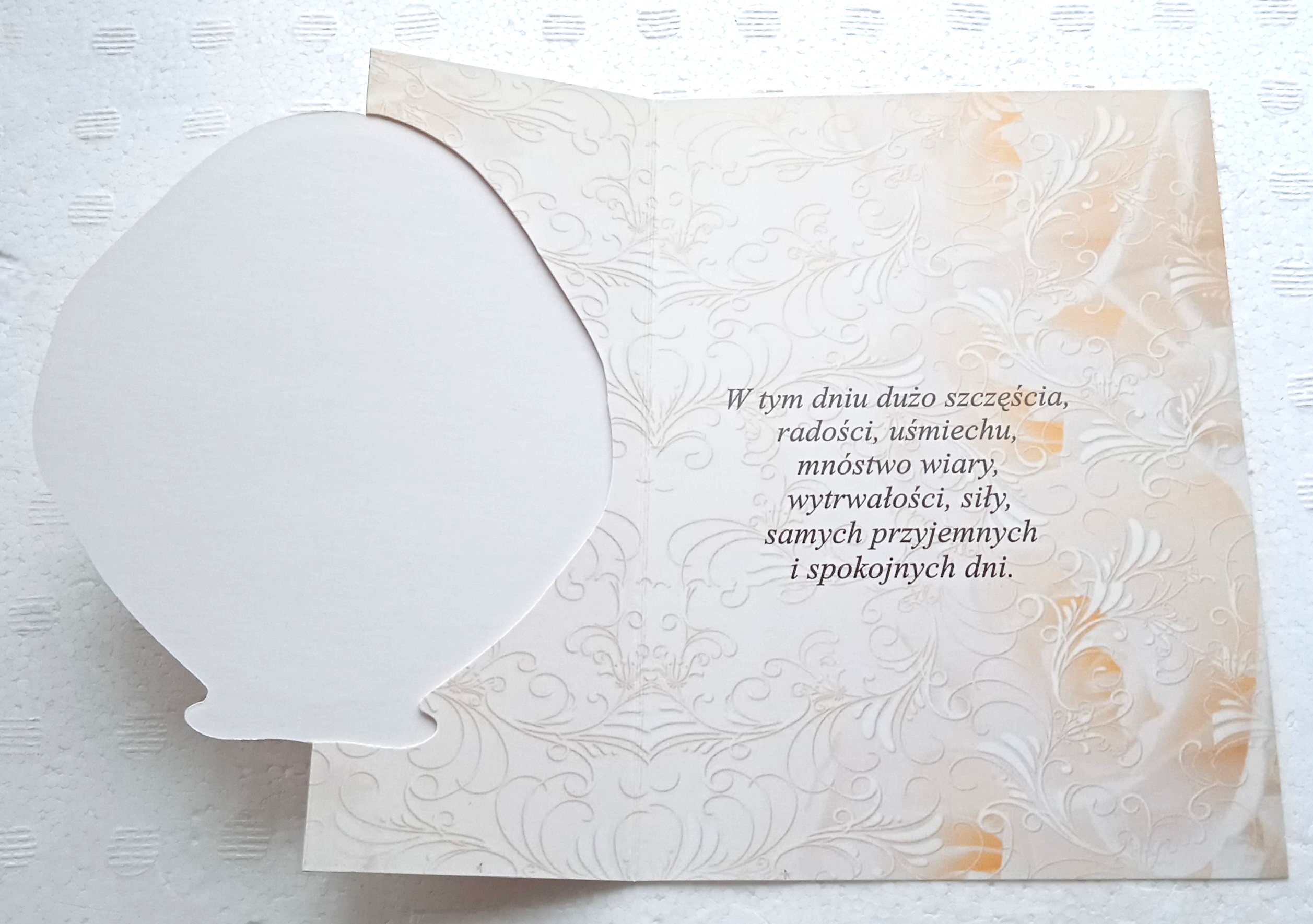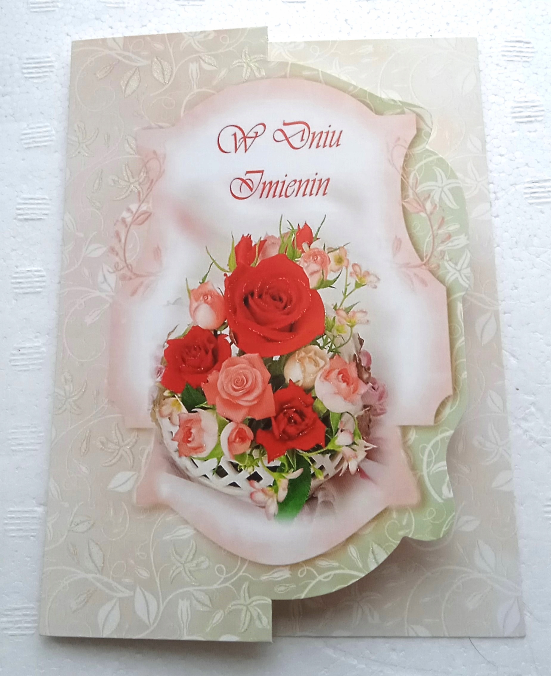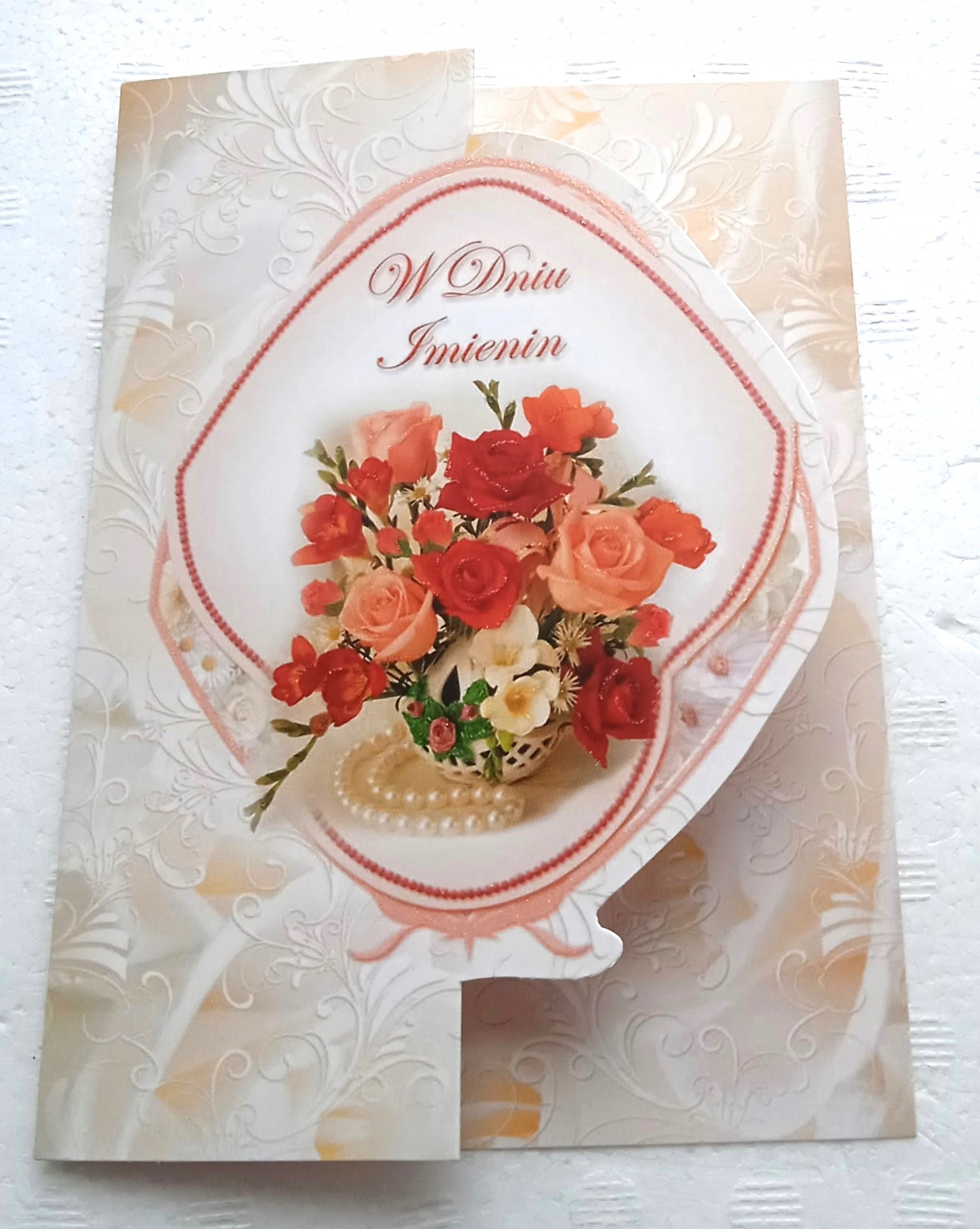 Открытка с напечатанными пожеланиями В ВАШИ ИМЕНИНЫ, вырезанная