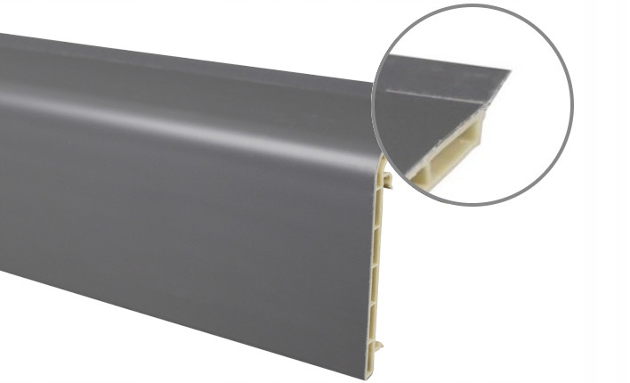 Плинтус оснащен уплотнительной кромкой вверху, что обеспечивает оптимальное прилегание к стене даже при небольших неровностях.