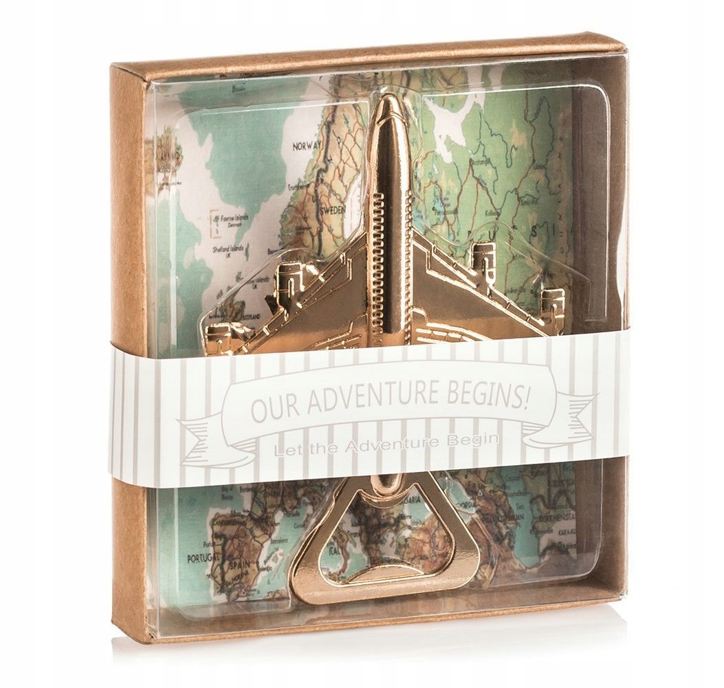 Удобная открывалка в форме самолета, которая навевает воспоминания об отпуске, великих каникулах, дальнейших поездках на выходные или путешествиях на всю жизнь. :) Открывалка также упакована в красивую подарочную коробку с изображением карты, что делает ее уникальным украшением стола или серванта.