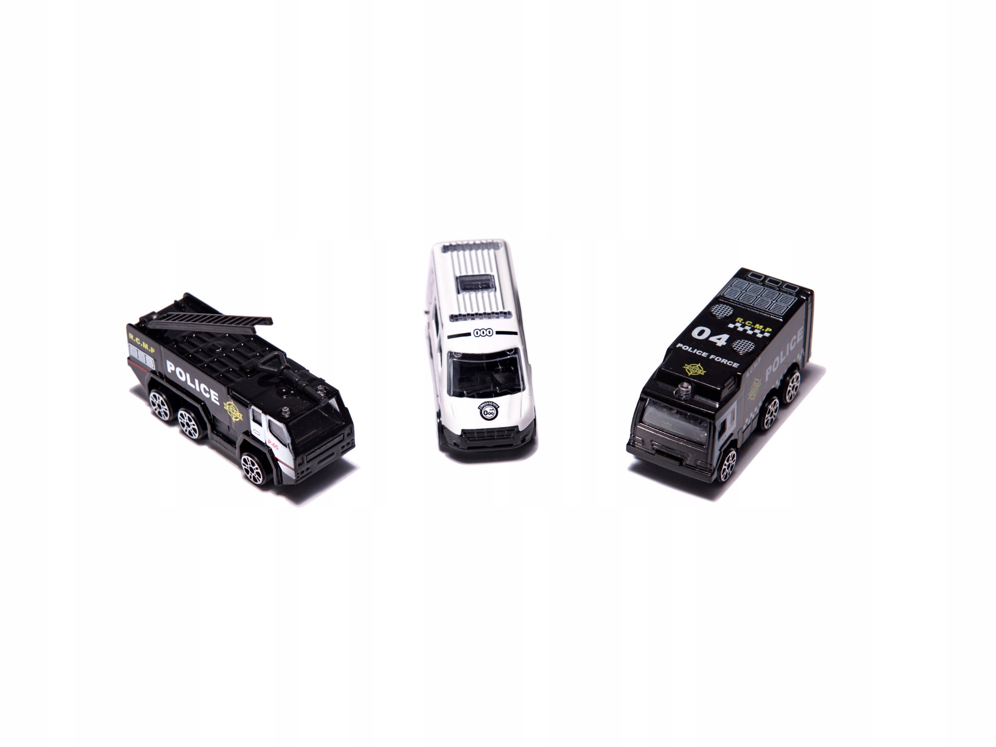 - В наборе много элементов, в том числе 7. дорожные знаки и 3 полицейские машины