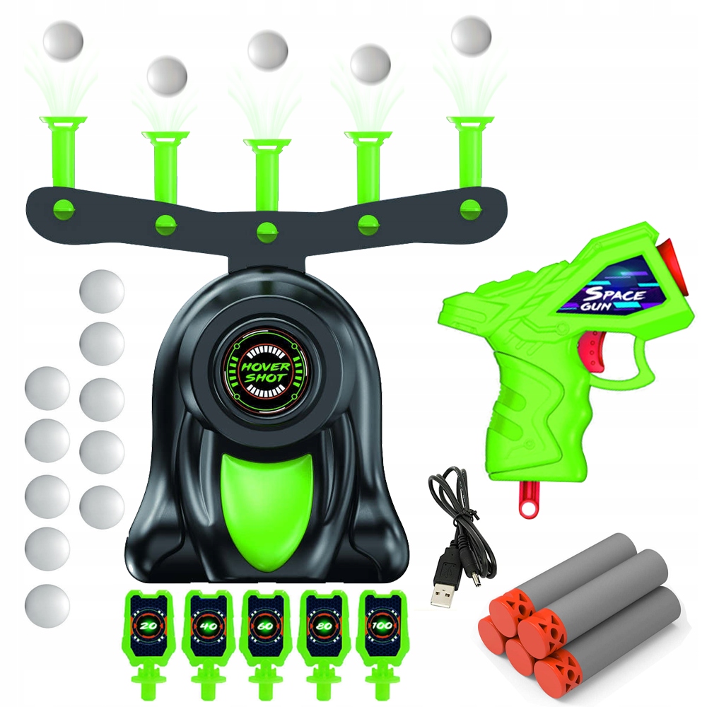 Новое измерение Геймплей – левитирующие мишени – это совершенно новый способ разнообразить веселье. Пенопластовые мишени поднимаются порывом воздуха, плавно плывя над устройством. Стрельба становится намного интереснее, тренируя навыки стрельбы и координацию вашего ребенка.