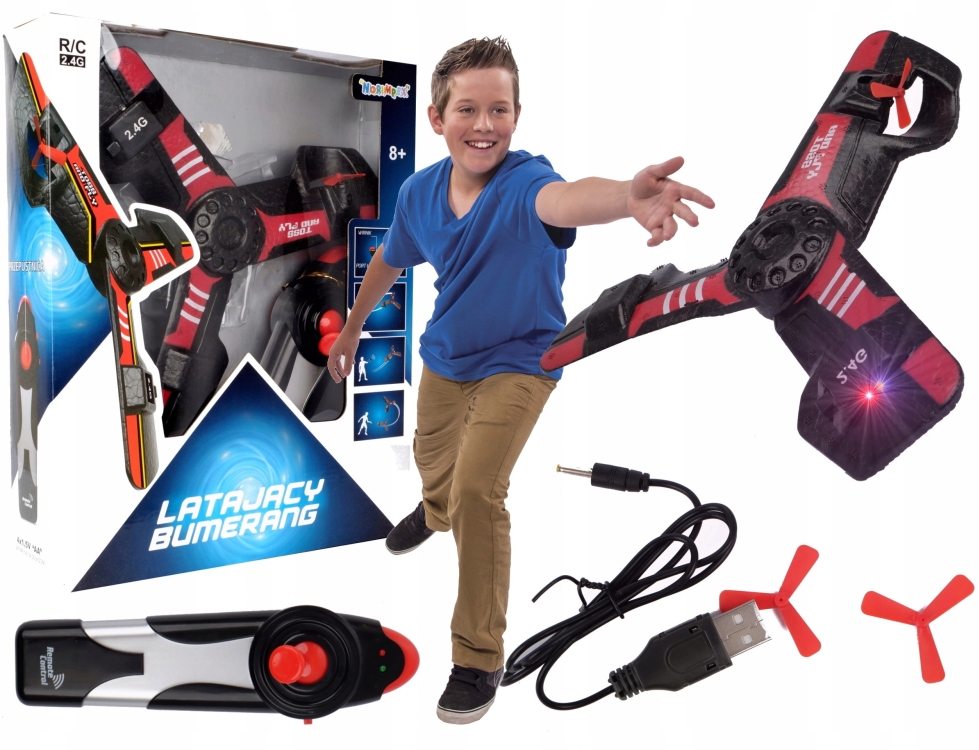 Летающий бумеранг со светодиодной подсветкой — это удивительный летающий «вертолет». В комплект входит пульт дистанционного управления, позволяющий регулировать скорость пропеллера и одновременно контролировать его высоту. Дополнительной достопримечательностью являются световые эффекты, которые отлично смотрятся в темноте. Бумеранг имеет аккумулятор, заряжаемый через USB-кабель (например, компьютер). Бумеранг можно запускать с пола или стола, а также запускать игрушку можно пальцем.