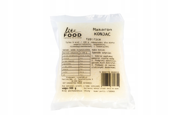 Просматривая «LITEFOOD PASTA KONJAC RICE 300G FIT RICE REDUCTION», вы можете быть уверены, что данный товар из каталога «Кухни мира» будет доставлен из Польши и проверен на целостность. В цене товара, указанной на сайте, учтена доставка из Польши. Внимание!!! Товары для Евросоюза, согласно законодательству стран Евросоюза, могут отличаться упаковкой или наполнением.
