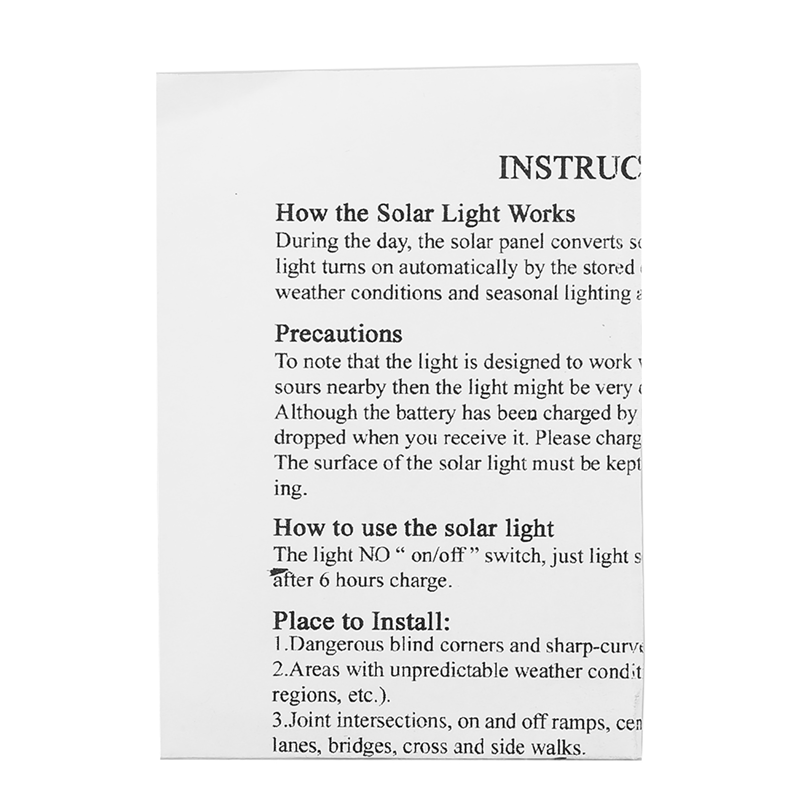 - Мощность: управление освещением, он будет автоматически заряжаться в течение дня и автоматически работать ночью (свет). Убедитесь, что свет будет нормально работать после зарядки в течение 6–8 часов в солнечные дни в первый раз.