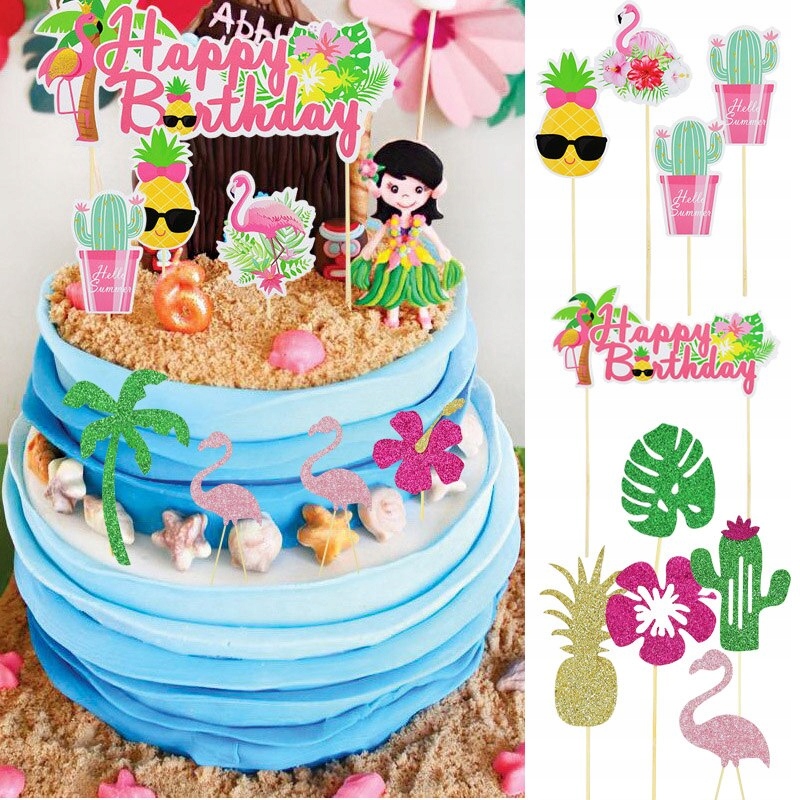Гавайские тема дня рождения торт Торт Топпер Фламинго Антепл зонтик пить одноразовые соломинки для летней свадьбы алоха декор