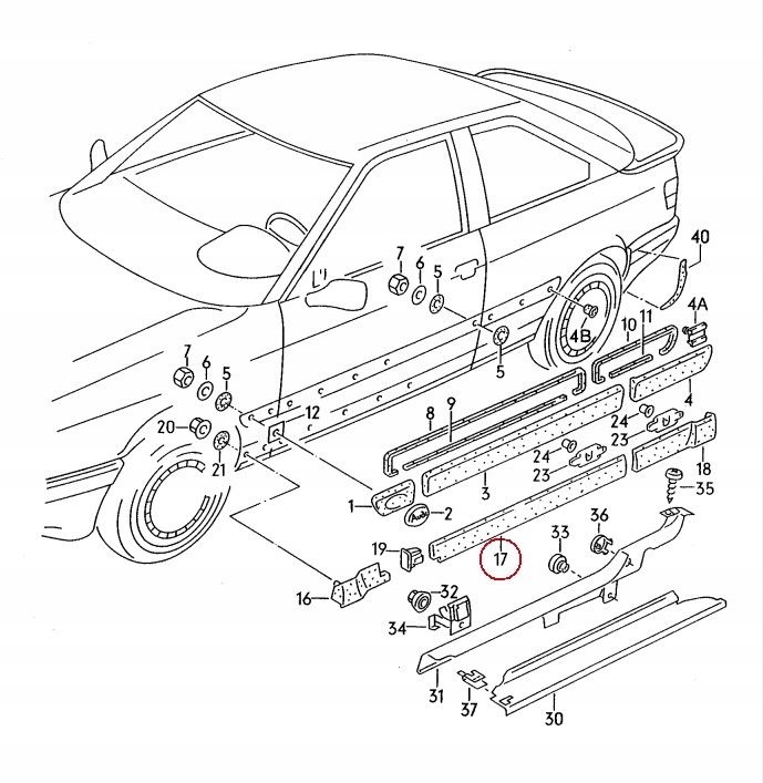 Левая нижняя резиновая полоса Audi Cabrio Coupe 895853959a