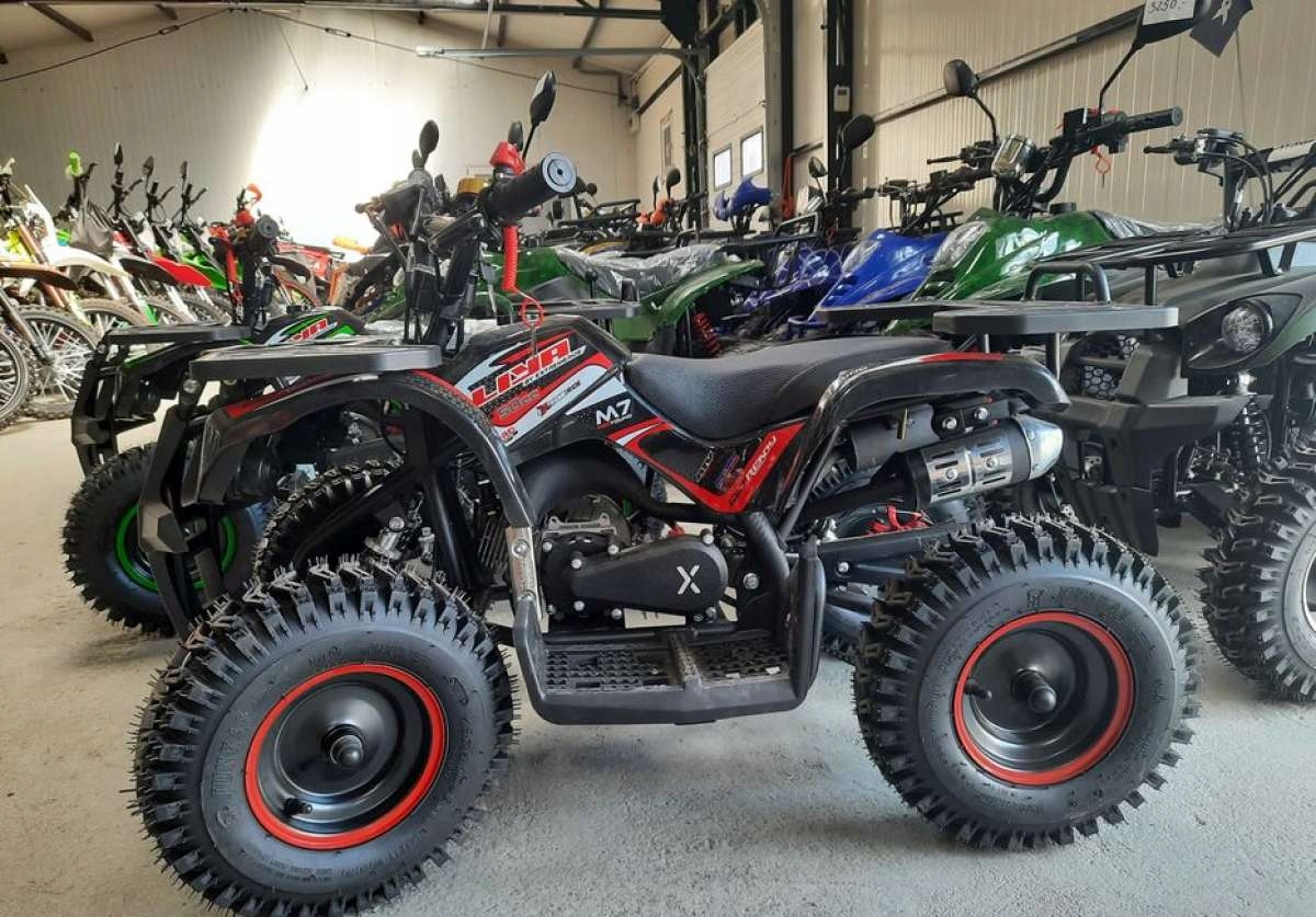 Мини-квадроцикл ЛИЯ М7 с легким запуском – транспортное средство с двухтактным двигателем (2Т) объемом 50 см3, предназначенное для детей 4-8 лет. Квадроцикл с большими 6-дюймовыми колесами, оснащен дисковыми тормозами, регулировкой скорости и настраиваемым сцеплением.