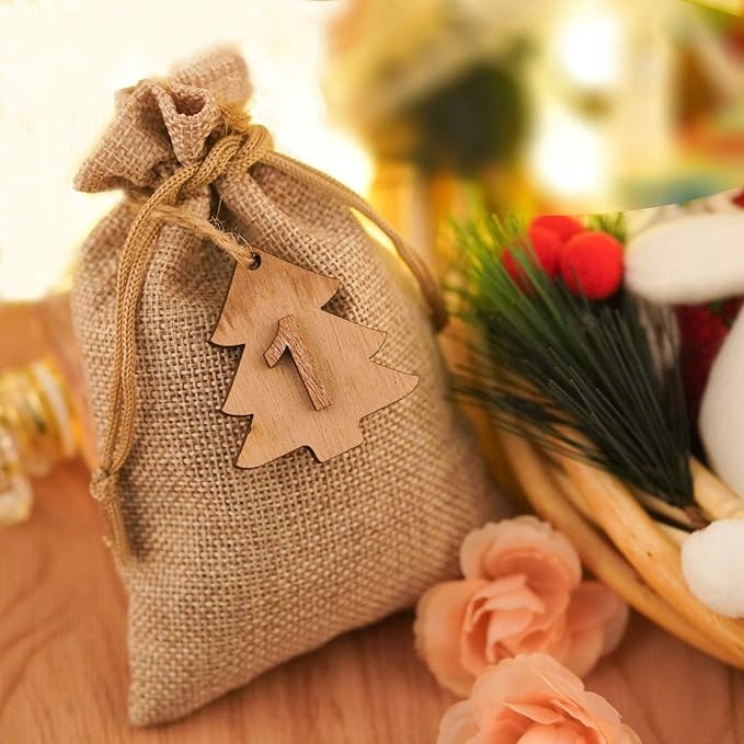 - - 30 джутовых мешков: В наборе 30 мешков размером 10 х 14 см. Можно использовать в качестве подарочной упаковки, парфюмерной сумки, украшения стола, гирлянды и подвески на елку.