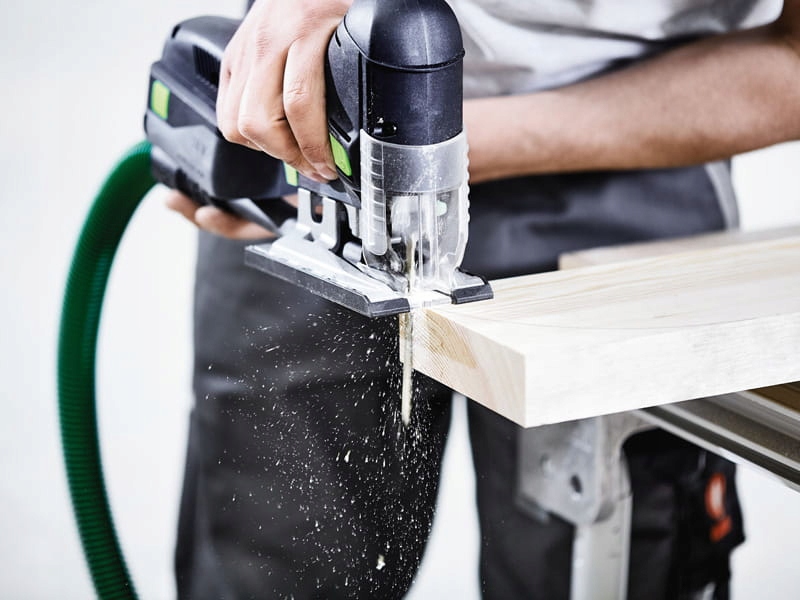 Складной кожух лобзика CARVEX PS 420 повышает эффективность всасывания и, следовательно, улучшает обзор линии реза.