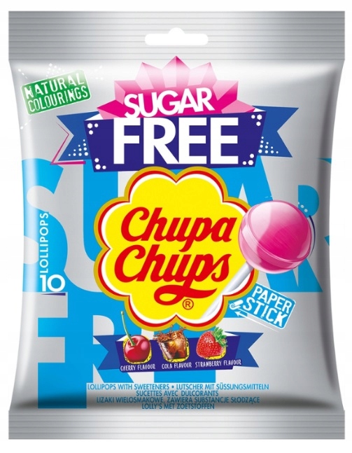 Леденцы Chupa Chups без сахара — это низкокалорийные леденцы без добавления сахара, подслащенные, среди прочего, мальтит.