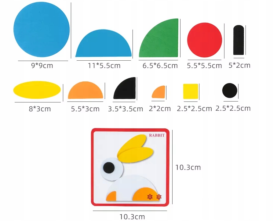 Набор состоит примерно из 70 штук деревянных красочных элементов различной формы, из которых мы можем составлять различные фигурки, животных и многое другое - единственное ограничение - наше воображение.