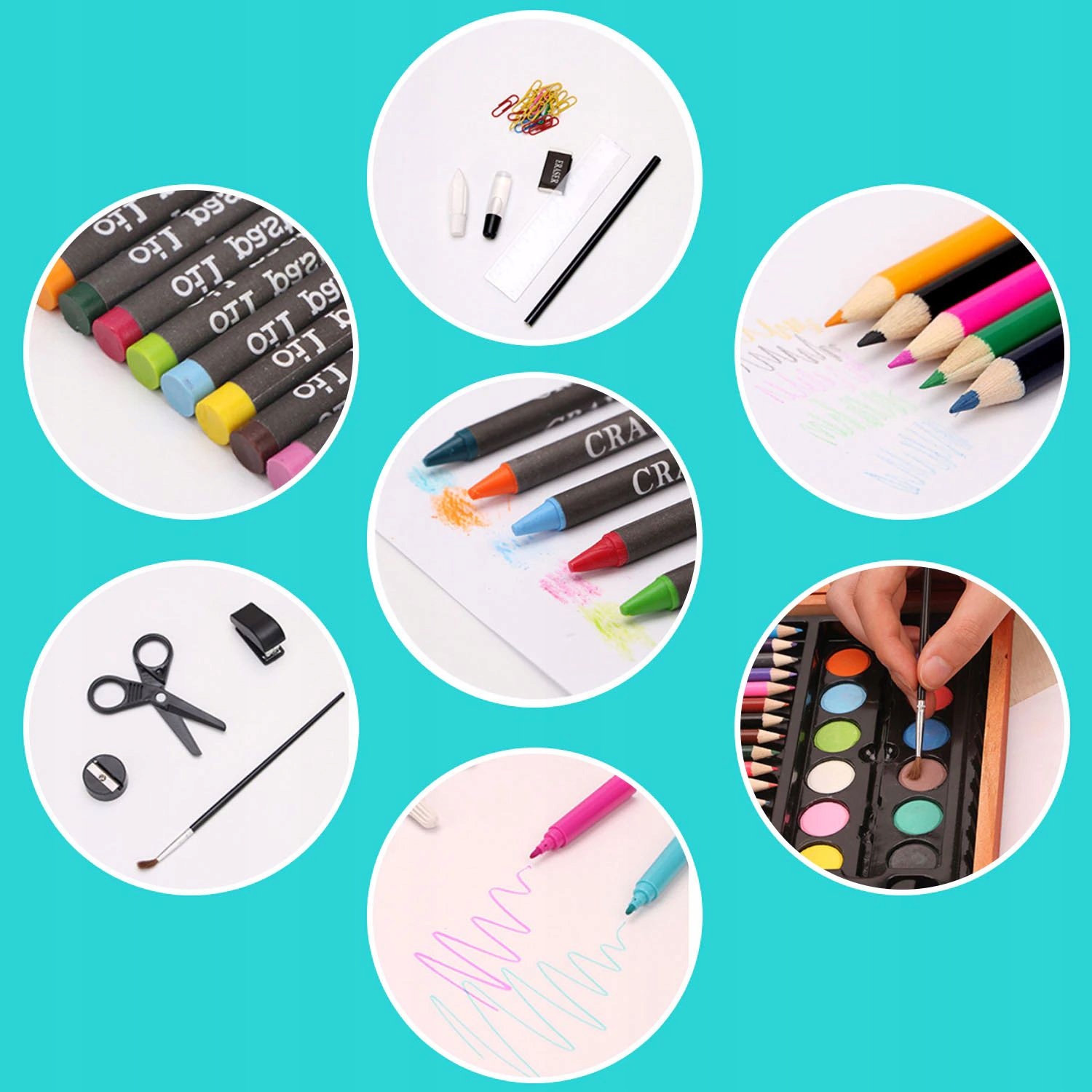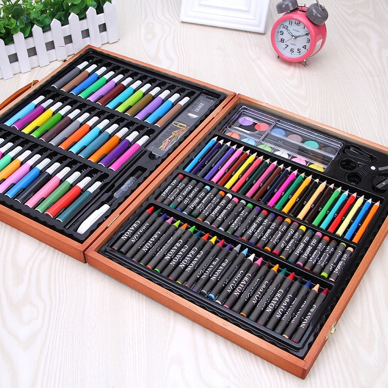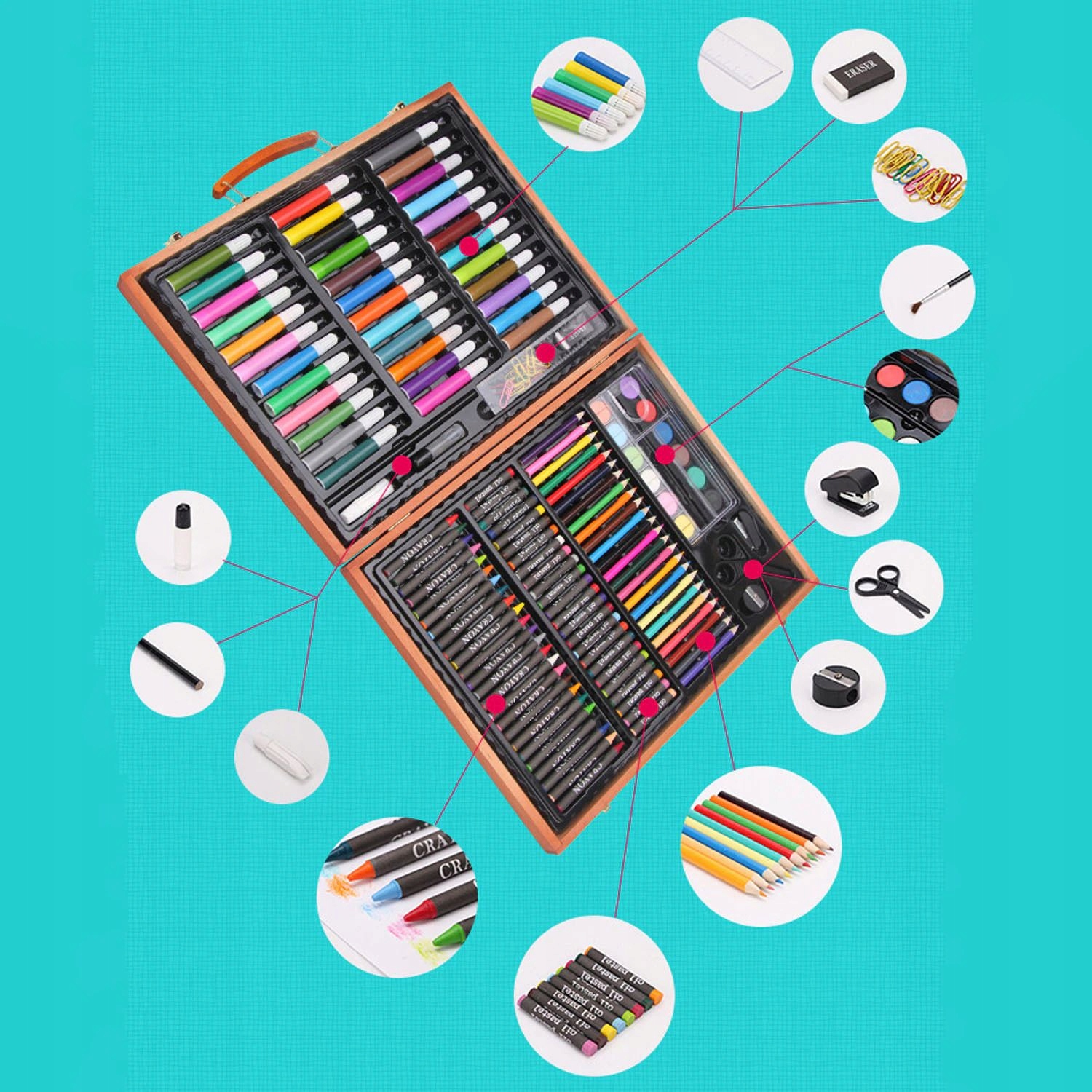 художественный набор для детей 150 элементов h1> теперь в эксклюзивном деревянном чемодане! h1> творческое веселье для всех - полный набор карандашей, красок, маркеров!