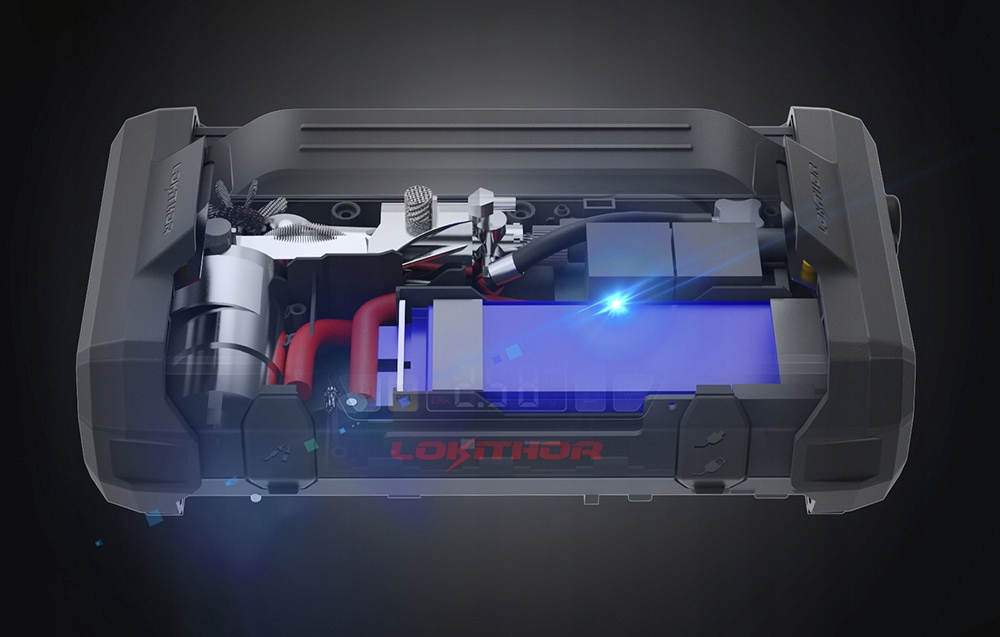 Lokithor обеспечивает пиковый ток 2500 А для автомобилей с напряжением 12 В, что позволяет завести автомобиль за считанные секунды. Он также функционирует как аккумулятор, фонарик и позволяет накачивать шины. Он имеет удобную ручку, облегчающую переноску, и весит 1,85 кг, что делает его намного легче свинцово-кислотных стартеров и более экологичным.