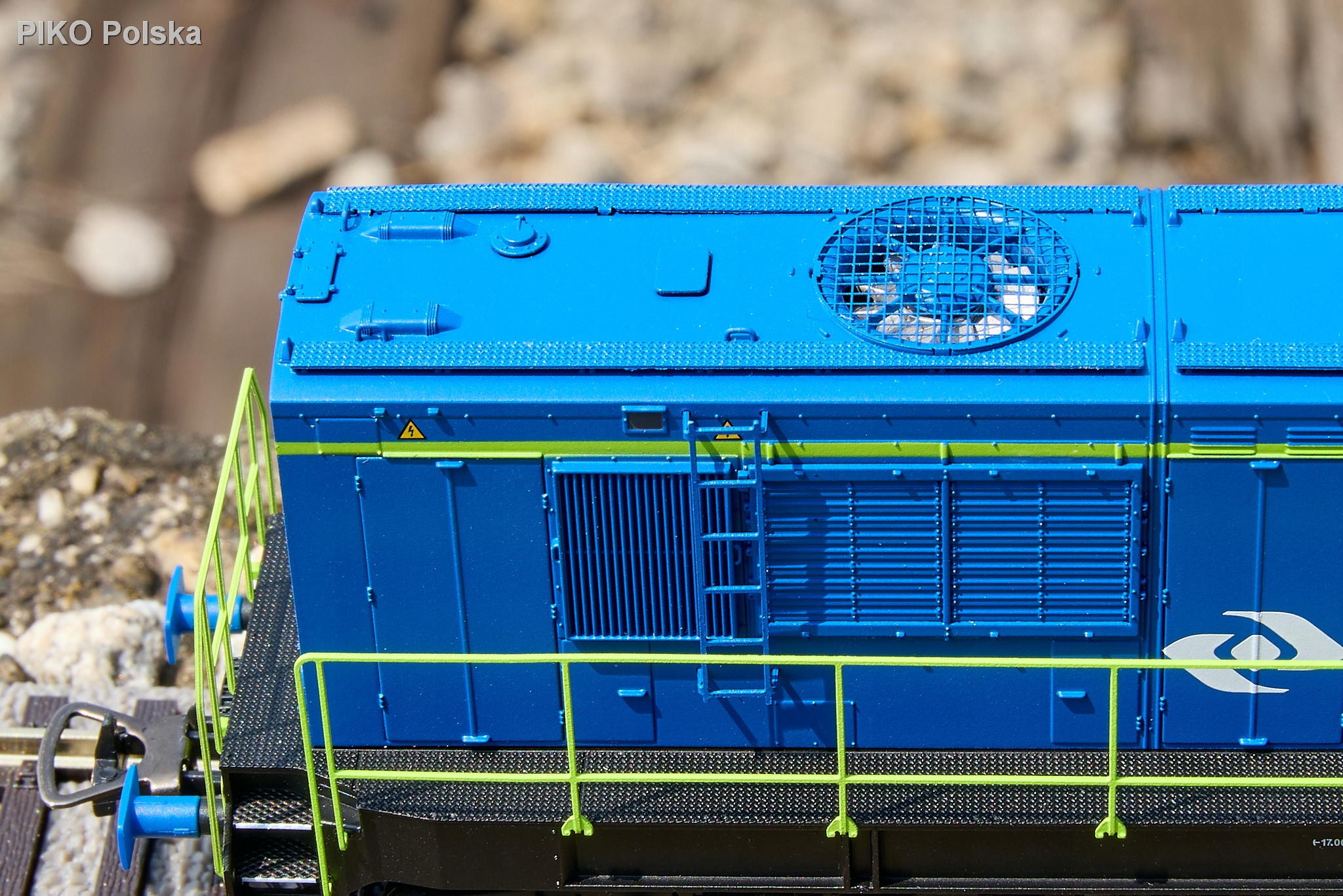 Новую конструкцию отличает также вращающийся вентилятор, прекрасно воспроизведенные тележки и филигранные металлические поручни. Технически модель соответствует проверенной линейке продуктов PIKO: центрально расположенный двигатель с двумя маховиками приводит в движение внешние колесные пары обеих тележек через карданные валы.