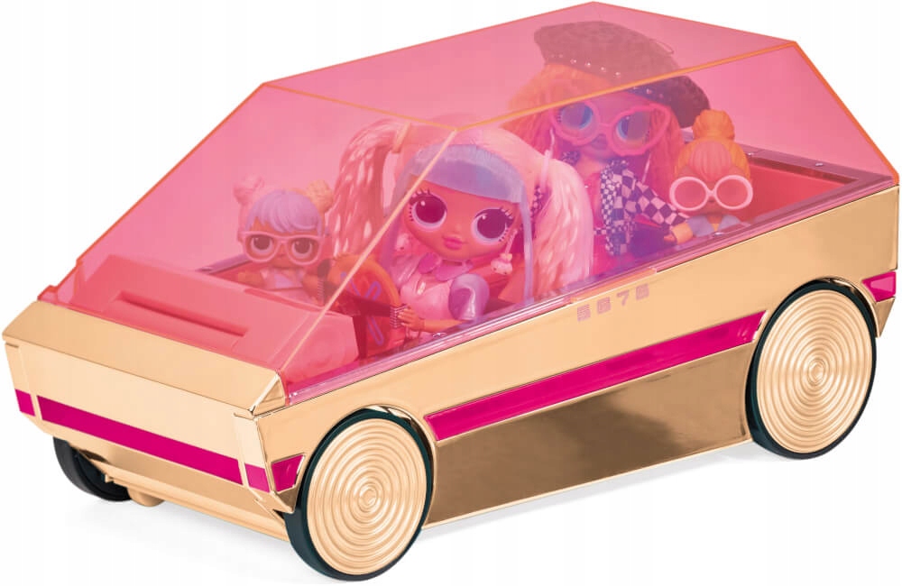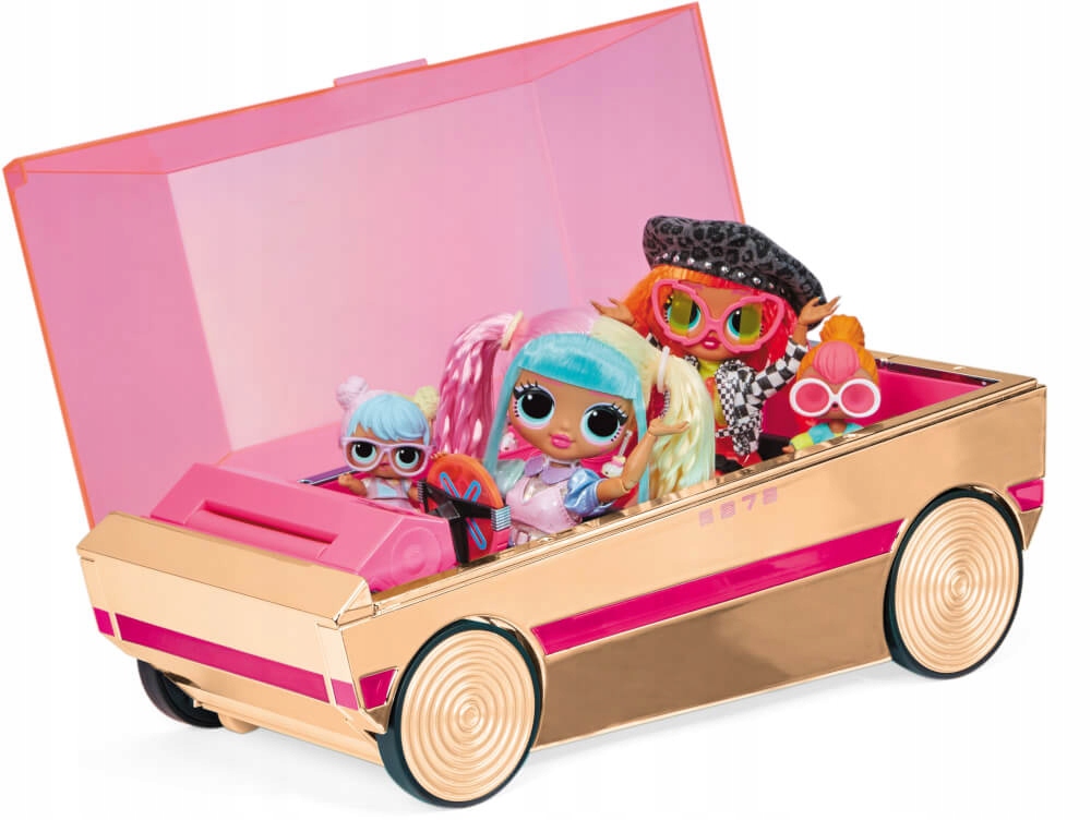 Машинка Party Cruiser — это машина с уникальным, нетрадиционным внешним видом. Ее золотисто-розовые цвета наверняка привлекут внимание многих поклонников кукол ЛОЛ. В машину помещаются как куклы из линейки O.M.G, так и их младшие сестры. В машине для вечеринок достаточно места, чтобы поместиться 4 модные куклы OMG. После снятия крыши автомобиля крыша превращается в лужу, в которую можно наливать воду. Нижняя часть автомобиля раскладывается и в разложенном виде превращается в настоящую танцпол, освещенную прожекторами